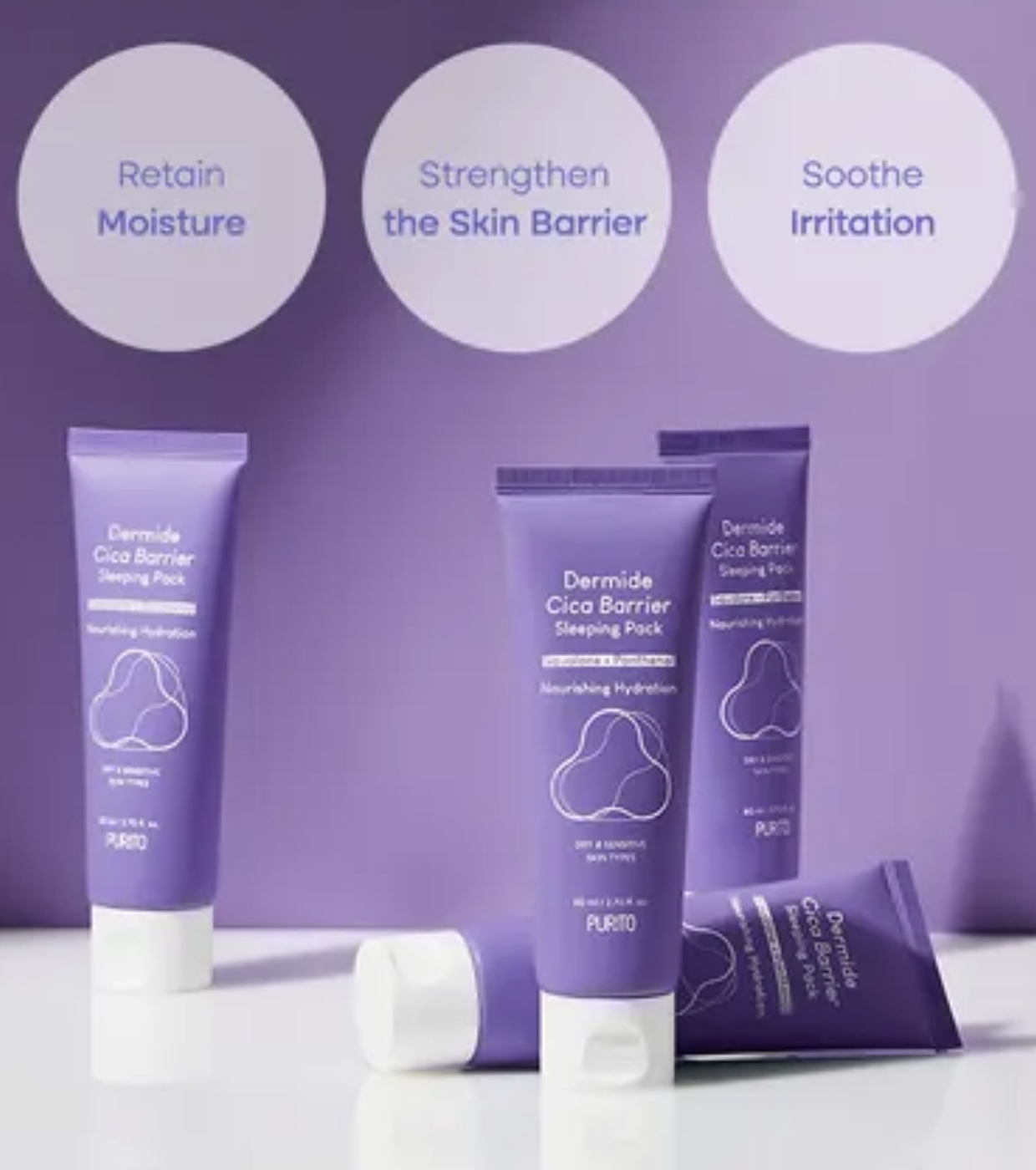 Dermide Cica Barrier Le masque de nuit Dermide Cica Barrier est le traitement idéal pour renforcer la barrière cutanée et prévenir la perte d'humidité pendant votre sommeil.