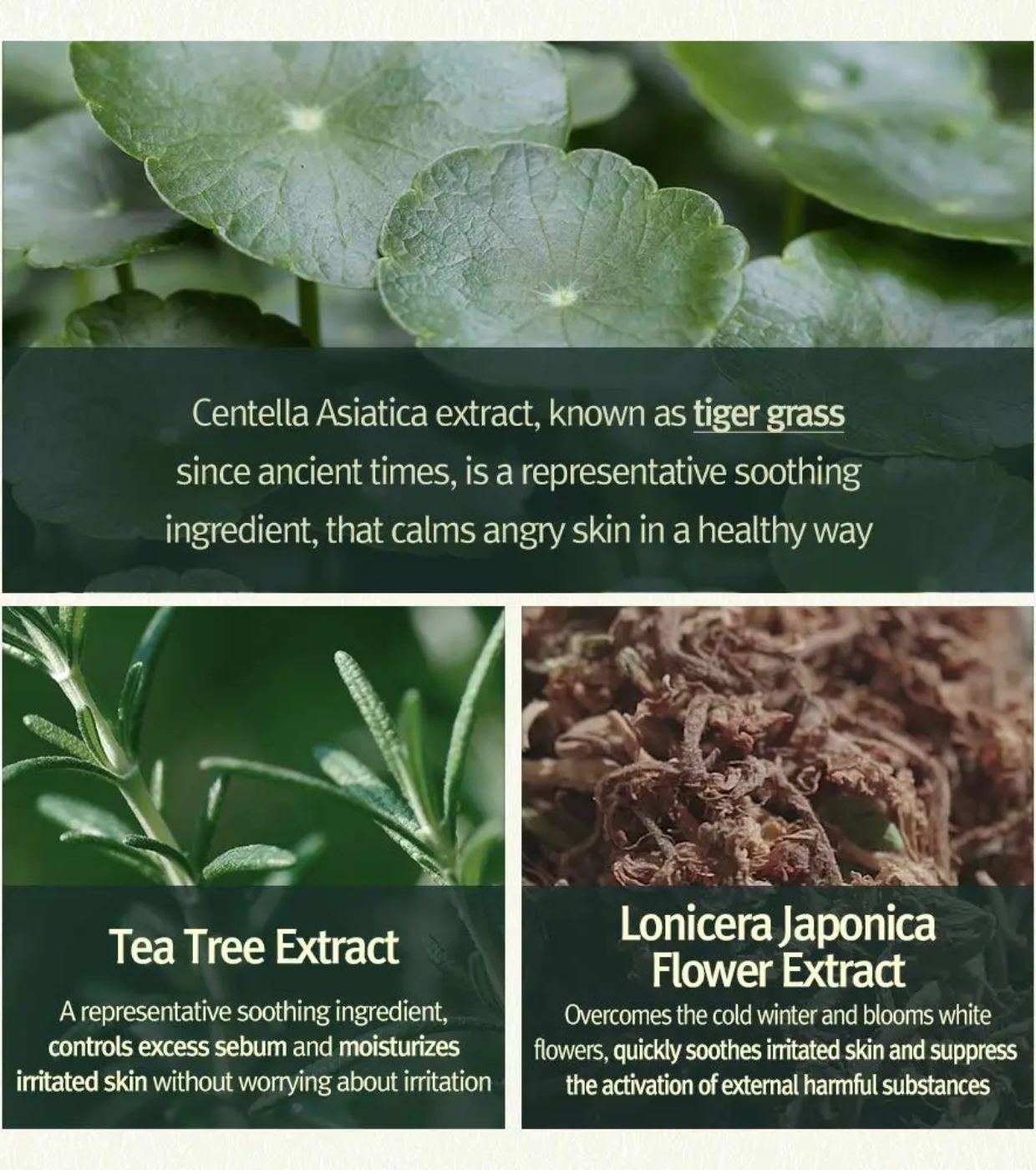 Water, Propanediol, Squalane, Cetearyl Alcohol, Glycerin, Panthenol, Betaine, Trehalose, Lonicera Japonica (Honeysuckle) Flower Extract, Melaleuca Alternifolia (Tea Tree) Leaf Extract, Camellia Japonica Flower Extract, Salvia Officinalis (Sage) Leaf Extract, Helianthus Annuus (Sunflower) Seed Oil, Butyrospermum Parkii (Shea) Butter, Centella Asiatica Extract, Sodium Hyaluronate, Sodium Acetylated Hyaluronate, Hydroxypropyltrimonium Hyaluronate, Hydrolyzed Hyaluronic Acid, Sodium Hyaluronate Crosspolymer, Acetyl Hexapeptide-8, Palmitoyl Tripeptide-5, Polyglyceryl-2 Stearate, Glyceryl Stearate, Ammonium Acryloyldimethyltaurate/Beheneth-25 Methacrylate Crosspolymer, Cetearyl Glucoside, Stearyl Alcohol, Sorbitan Olivate, Stearic Acid, Arachidic Acid, Myristic Acid, Oleic Acid, Plamitic Acid, Hydrogenated Polydecene, Sodium Polyacryloyldimethyl Taurate, Trideceth-10, Dipropylene Glycol, Polyglyceryl-10 Myristate, Cetyl Ethylhexanoate, Ethylhexyl Palmitate, Caprylic/Capric Triglyceride, Ethylhexylglycerin, Tocopherol, Butylene Glycol, Caprylyl Glycol, Hydroxyacetophenone, Pentylene Glycol, Disodium EDTA, 1,2-Hexanediol