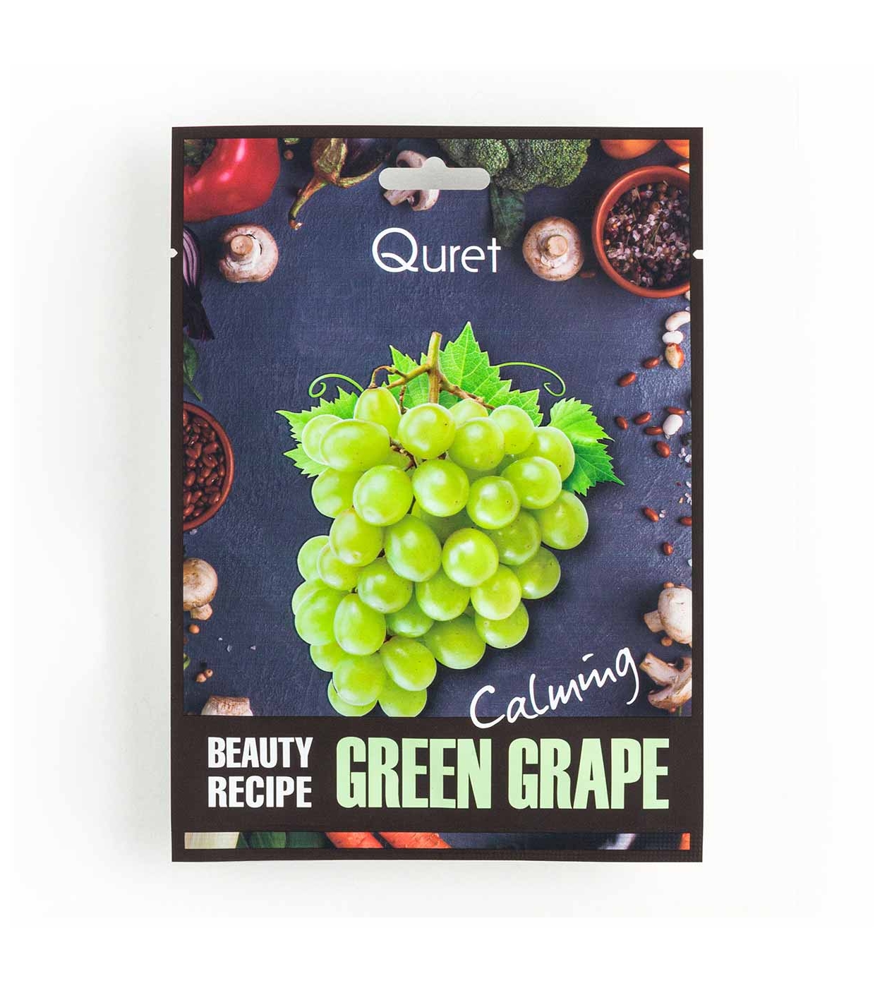Renouvelez et apaisez votre peau avec ce masque apaisant Beauty Recipe de Quret , formulé avec de l'extrait de raisin et de l'acide hyaluronique.