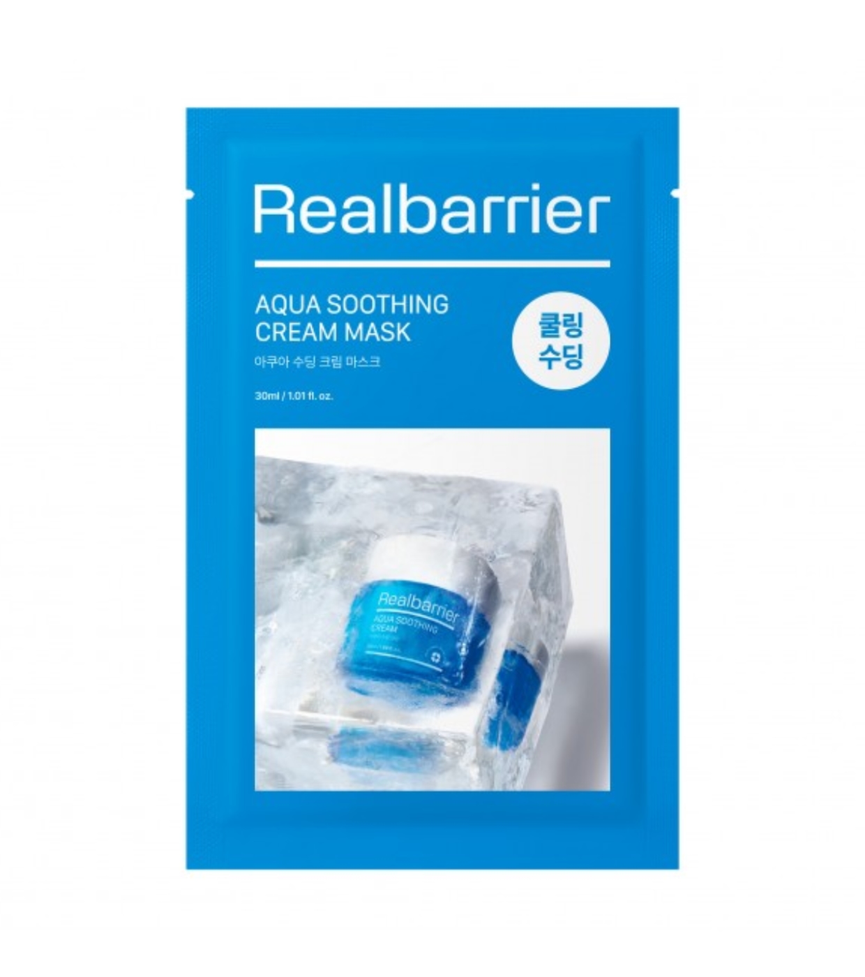 Aqua Soothing Cream Mask Le masque crème apaisant Aqua est un masque en feuille conçu pour apporter un soulagement immédiat, une hydratation en profondeur et un effet rafraîchissant sur les peaux sensibles, déshydratées ou chaudes.