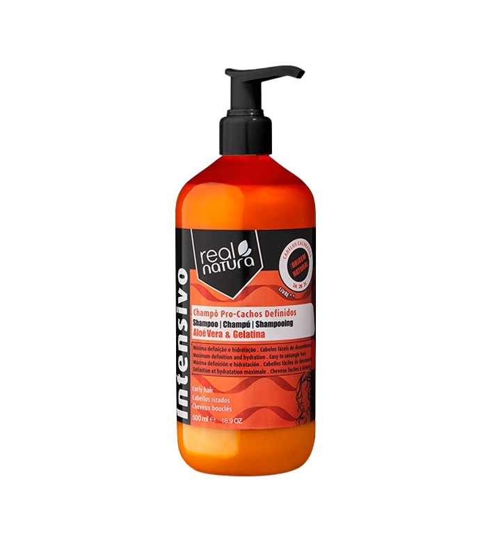 Shampooing Pro Curls de Real Natura à l'aloe vera et à la gélatine.