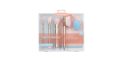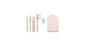 Ce coffret comprend 4 pinceaux visage et corps, une éponge à maquillage et un gant pour appliquer l'autobronzant.