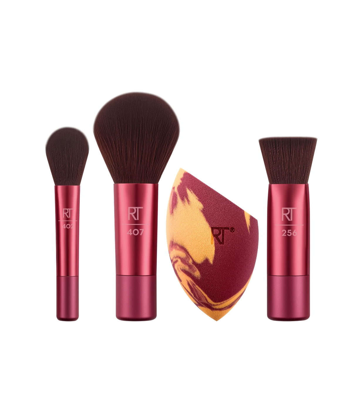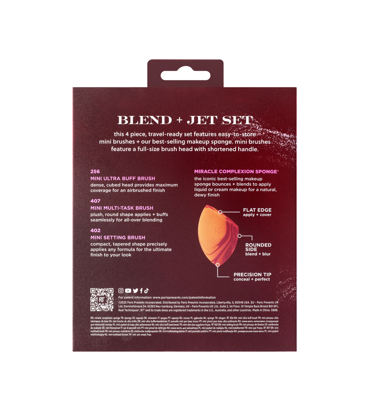 Emportez toujours vos essentiels de maquillage avec vous grâce à cet ensemble 4 pièces Blend + Jet Set de Real Techniques au format mini, conçu pour faciliter votre routine où que vous soyez.