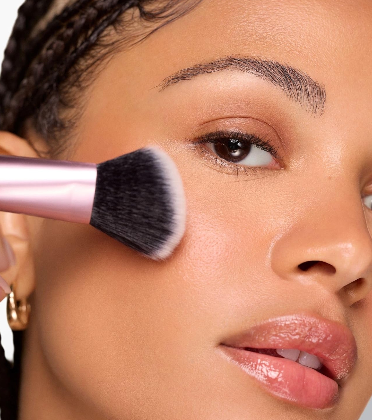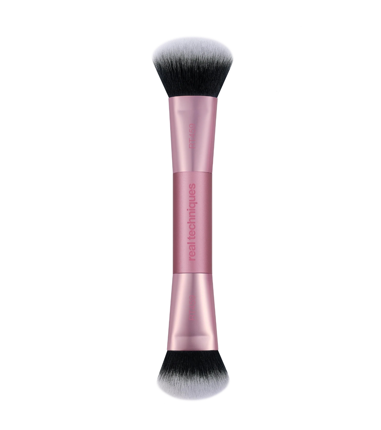 C'est un pinceau pratique aussi bien pour un maquillage complet que pour des retouches rapides, car il permet de travailler sur différentes zones du visage avec un seul outil.