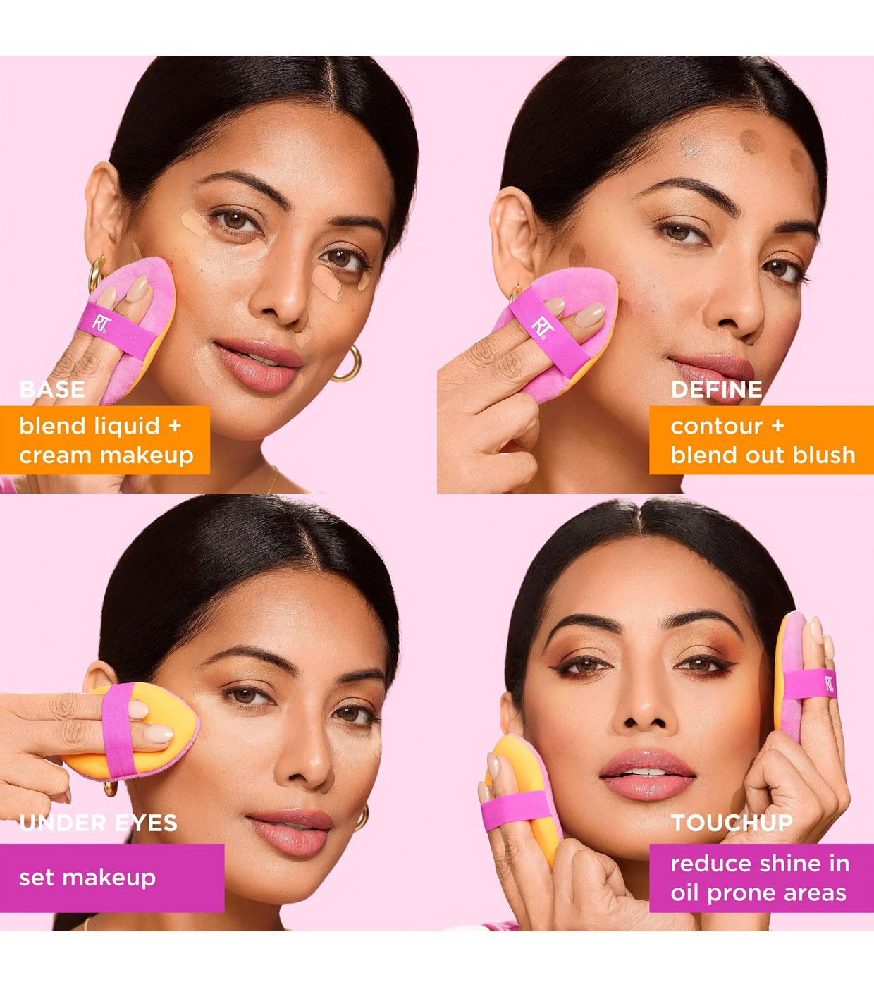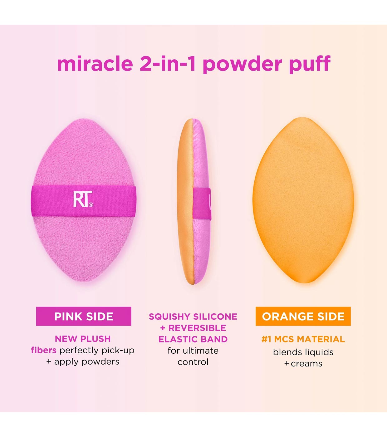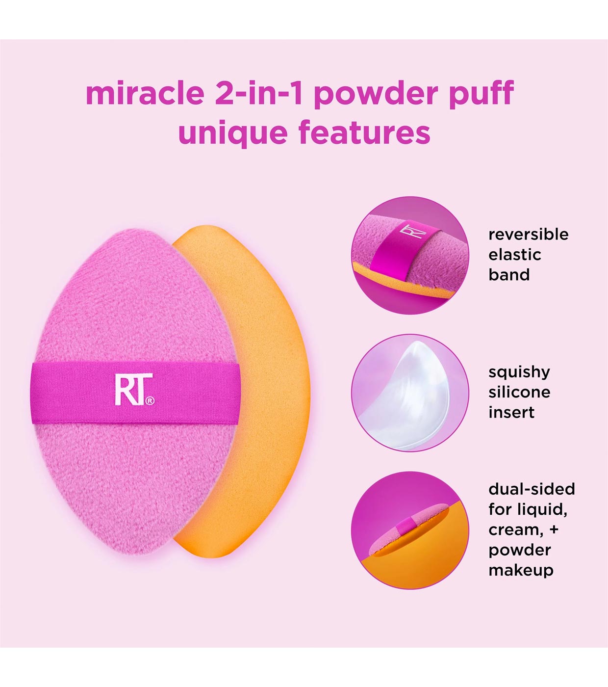 Real Techniques Miracle 2-in-1 Powder Puff est une houppette de maquillage à double texture et multi-usage conçue pour fonctionner avec des poudres, des liquides et des crèmes pour un fond de teint lisse et parfaitement fixé.