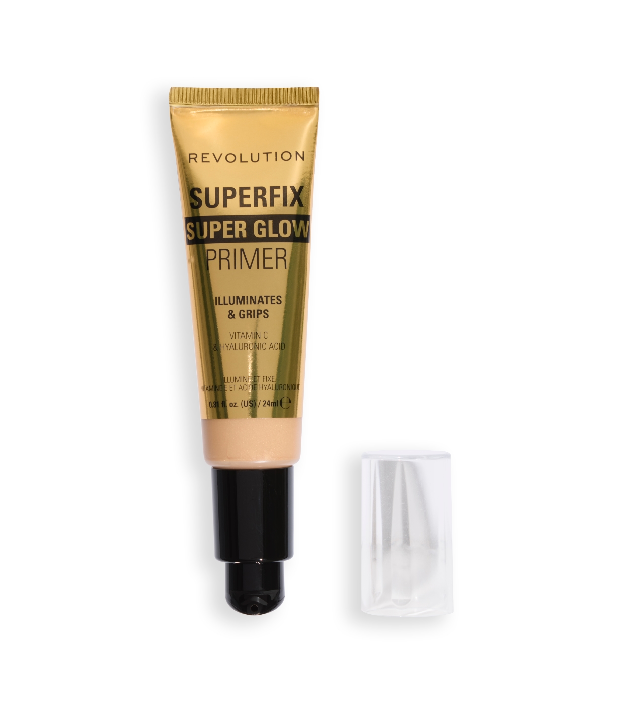Obtenez un fini radieux et durable avec le Superfix Super Glow Primer de Revolution, un apprêt tout-en-un qui illumine et fixe le maquillage avec une touche d'éclat sain.