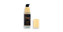 Ce fond de teint est présenté dans un emballage en verre avec un capuchon doré brillant et un luxueux design brun soyeux.