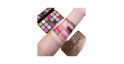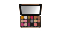 Cette palette comprend 18 ombres aux finitions mates, chatoyantes et métalliques, dans des tons de rose, d'or et de marron.