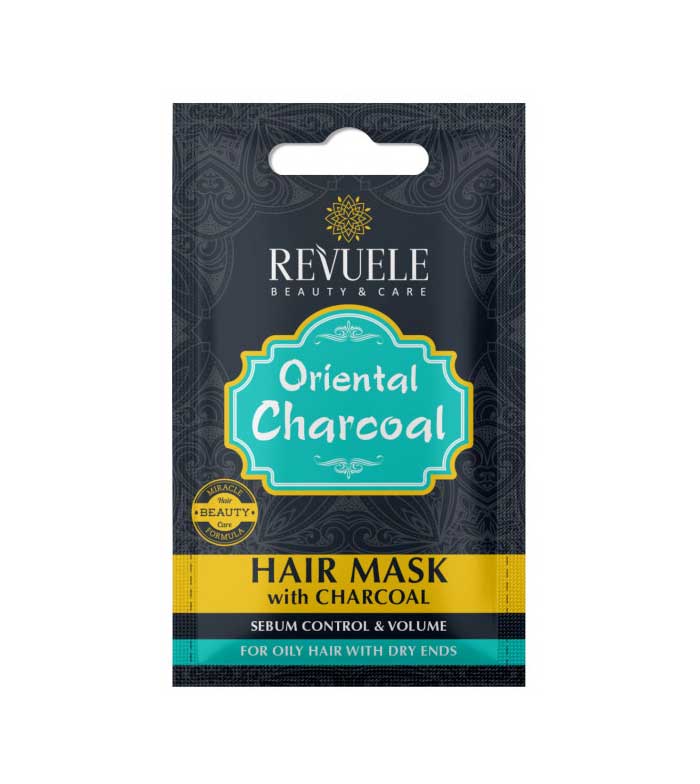 Masque capillaire au charbon Revuele Oriental spécialement indiqué pour les cheveux gras aux pointes sèches.