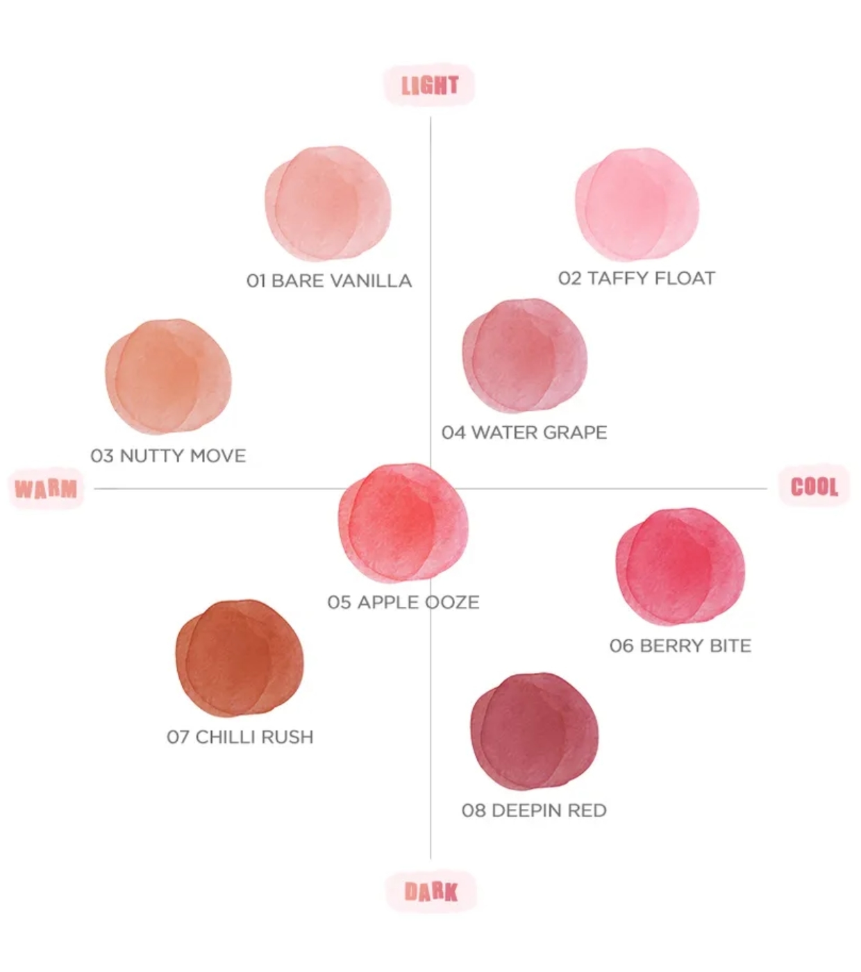 Cette teinture à lèvres légère à base d'eau crée une couche fine et confortable qui s'applique en douceur, offrant un fini naturel, translucide et repulpant.
