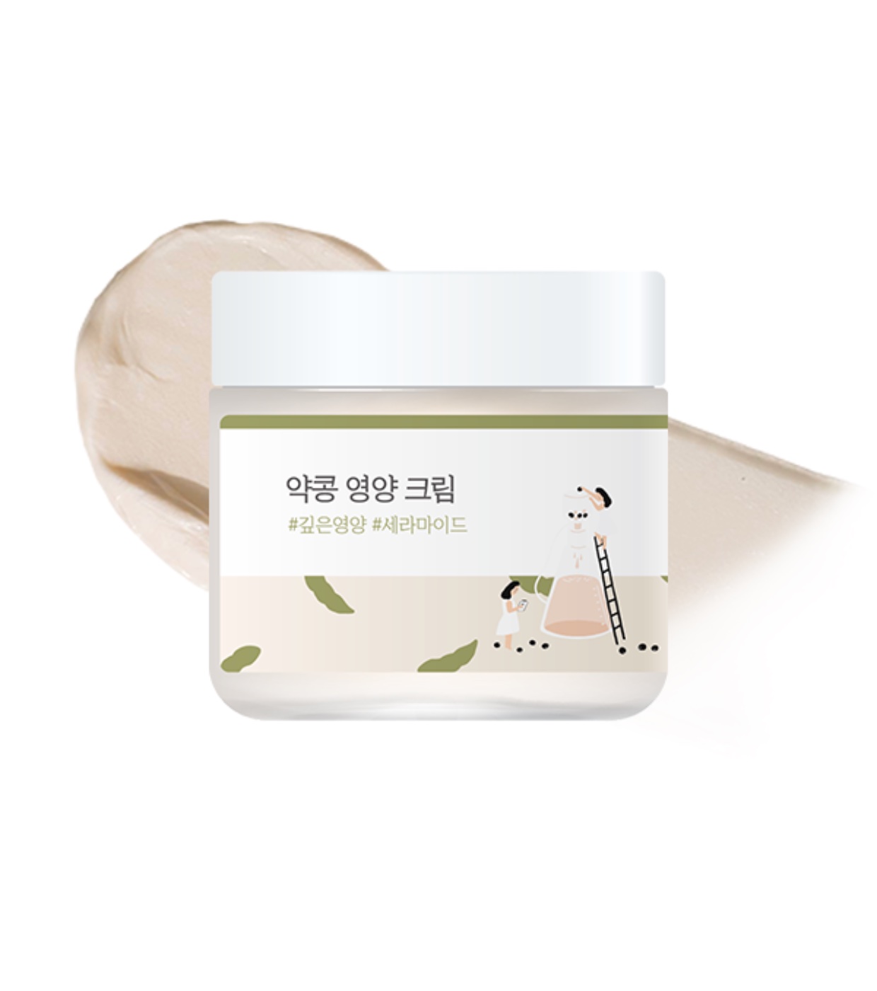 Chouchoutez votre peau avec la crème pour le visage Soybean Nourishing Round Lab contenant 10 000 ppm d'extrait de soja noir et de céramide NP pour réparer la barrière cutanée endommagée tout en protégeant la peau des agressions extérieures.