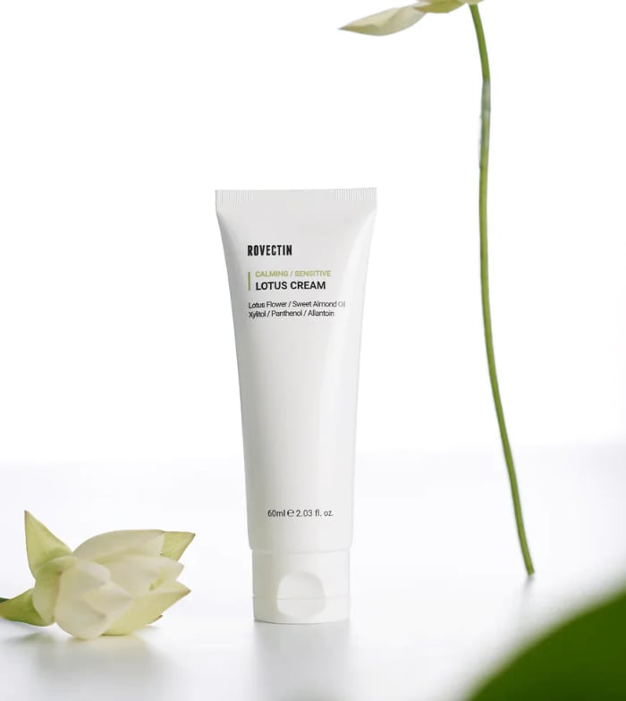 La crème apaisante au lotus de Rovectin est une crème pour le visage végétalienne spécialement formulée pour les peaux sensibles, sèches ou réactives.