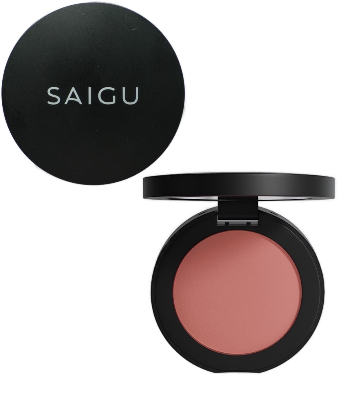 La poudre blush Saigu Cosmetics offre une expérience d'application douce et soyeuse, offrant une texture légère qui se fond facilement dans la peau.
