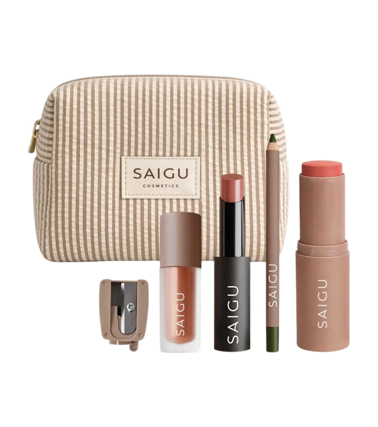 Ce coffret Mediterranean Glow de Saigu Cosmetics réunit une sélection de produits essentiels pour créer un look complet, lumineux et flatteur avec un effet Éclat Méditerranéen.