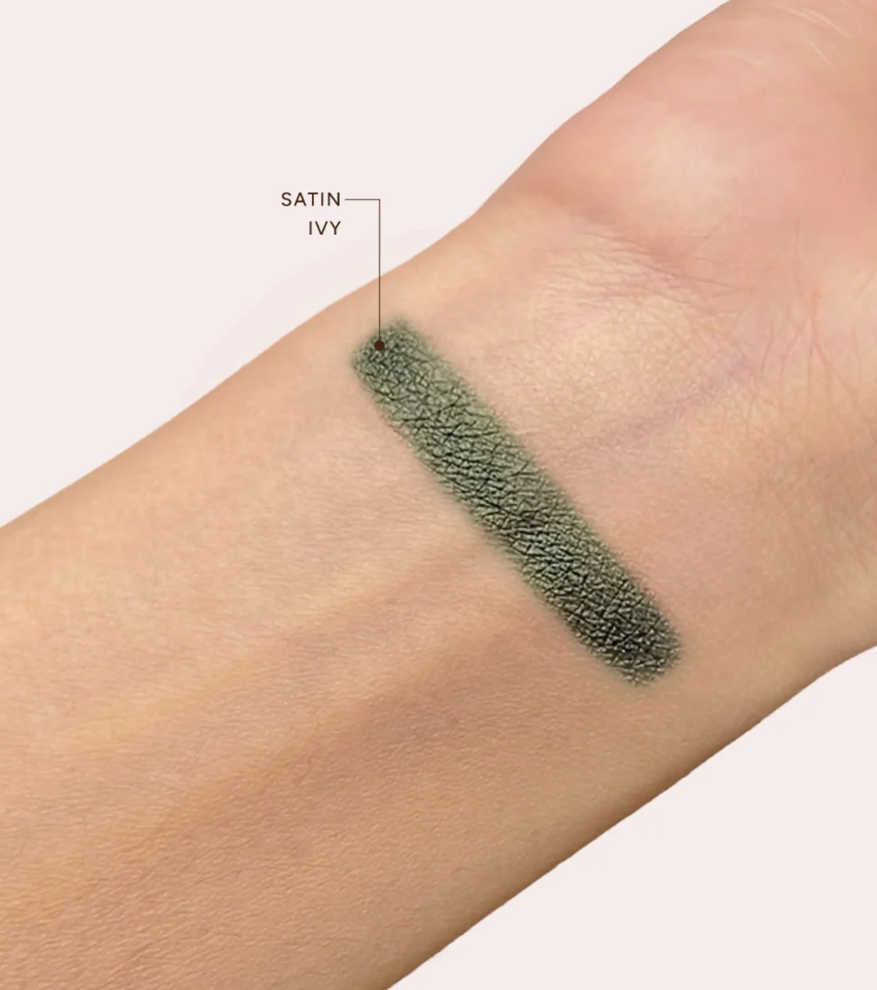 La teinte de la collection : Satin Ivy, est un crayon satiné avec une tonalité verte métallique chaude qui rappelle la couleur du lierre.
