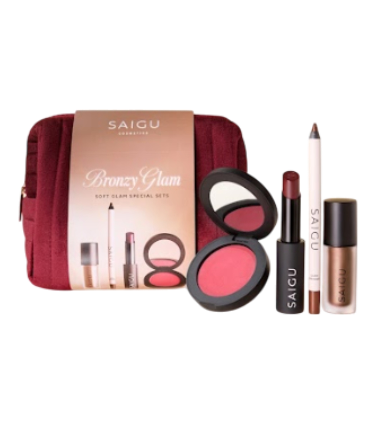 Le pack Bronzy Glam de Saigu Cosmetics combine la douceur du style Cherry Girl avec une touche bronze qui ajoute de la profondeur et de l'élégance au look.