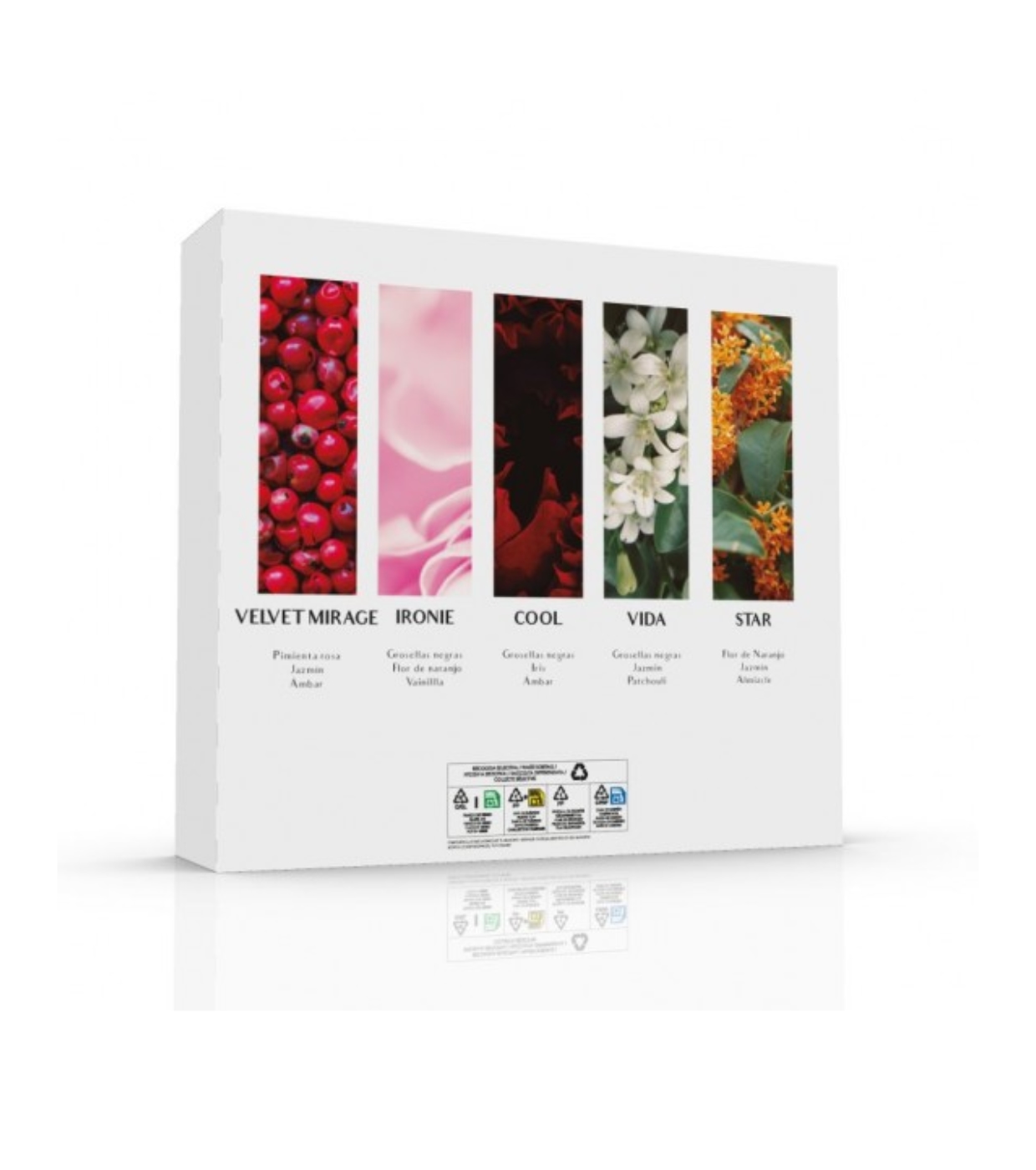 Il comprend cinq parfums au format 30 ml, idéal pour explorer différents profils olfactifs de manière pratique et organisée.