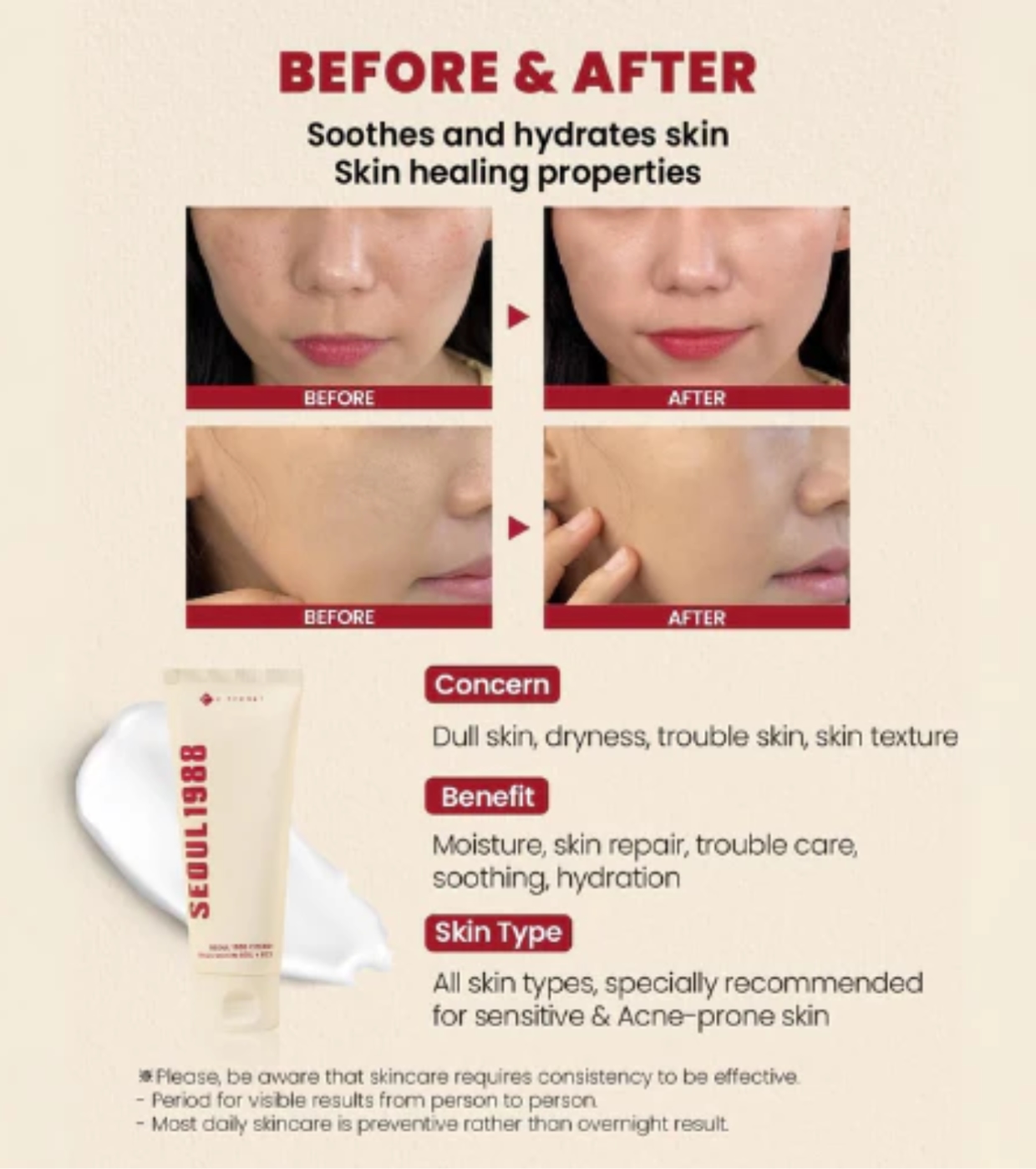 Sa formule avancée offre une hydratation en profondeur, apaise les peaux sensibles et aide à renforcer la barrière cutanée, offrant un fini sain et éclatant.