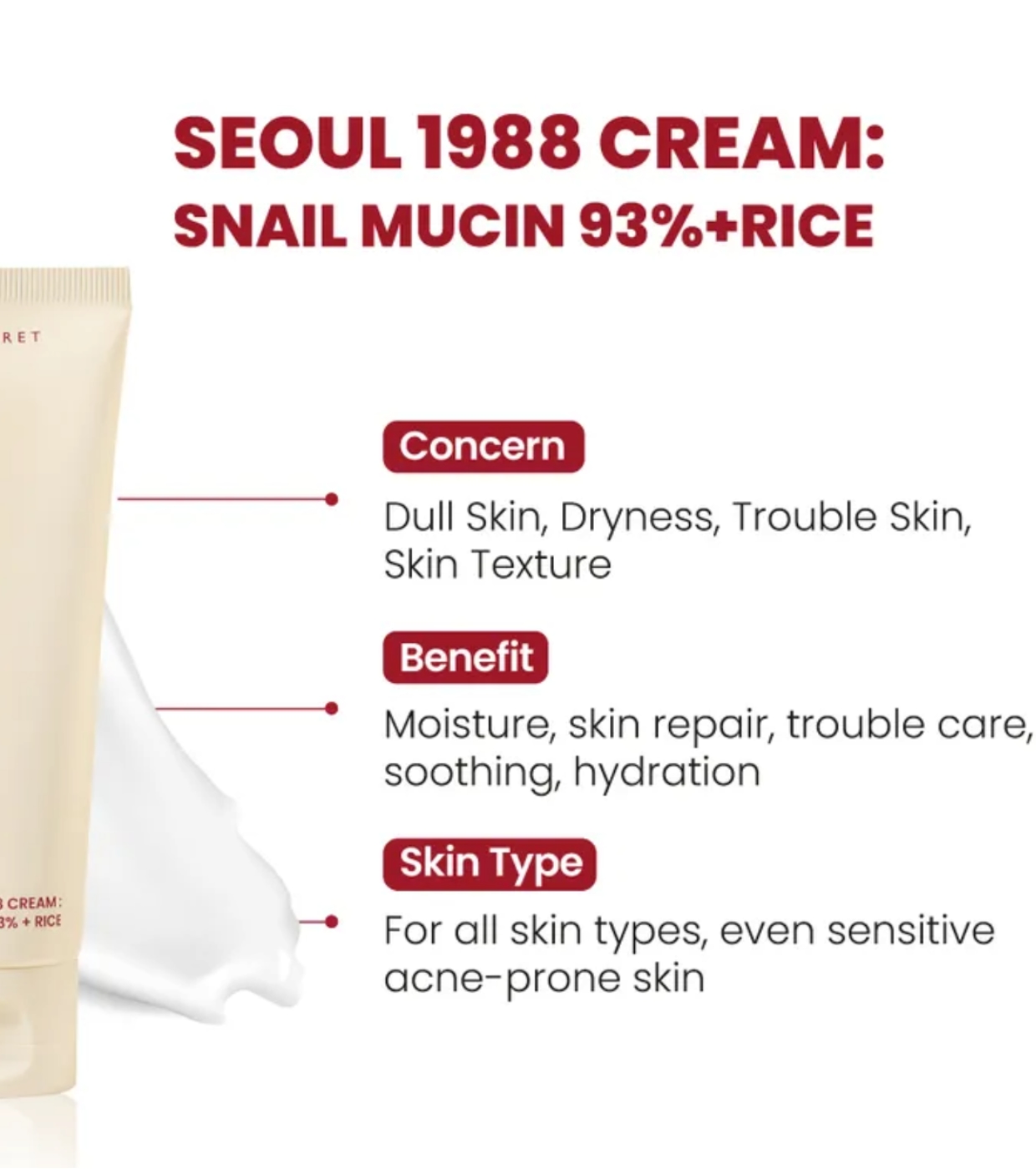 Découvrez une peau plus hydratée, lumineuse et renforcée avec cette crème Snail Mucin 93% + Rice de K-secret enrichie à 93% de filtrat de sécrétion d'escargot et de ferment de riz (saké).