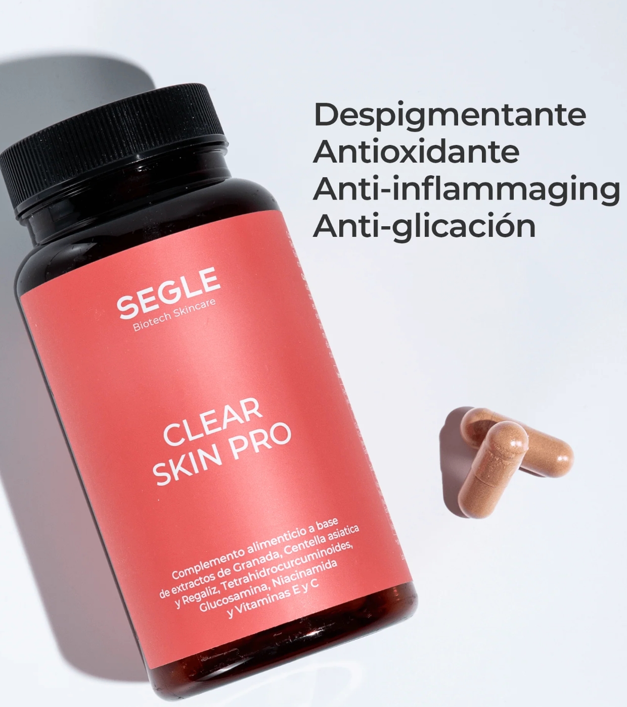 Découvrez ce coffret de 3 compléments alimentaires Clear Skin Pro de Segle dépigmentant et antioxydant est formulé pour améliorer la santé de la peau et des articulations avec une action complète anti-taches, anti-âge, antioxydante et anti-inflammatoire.