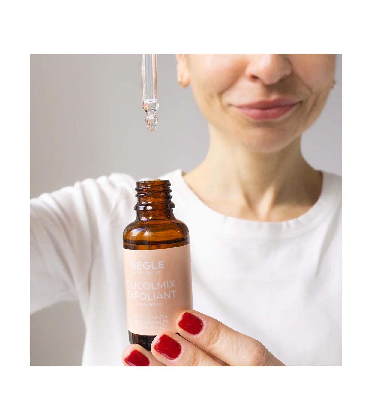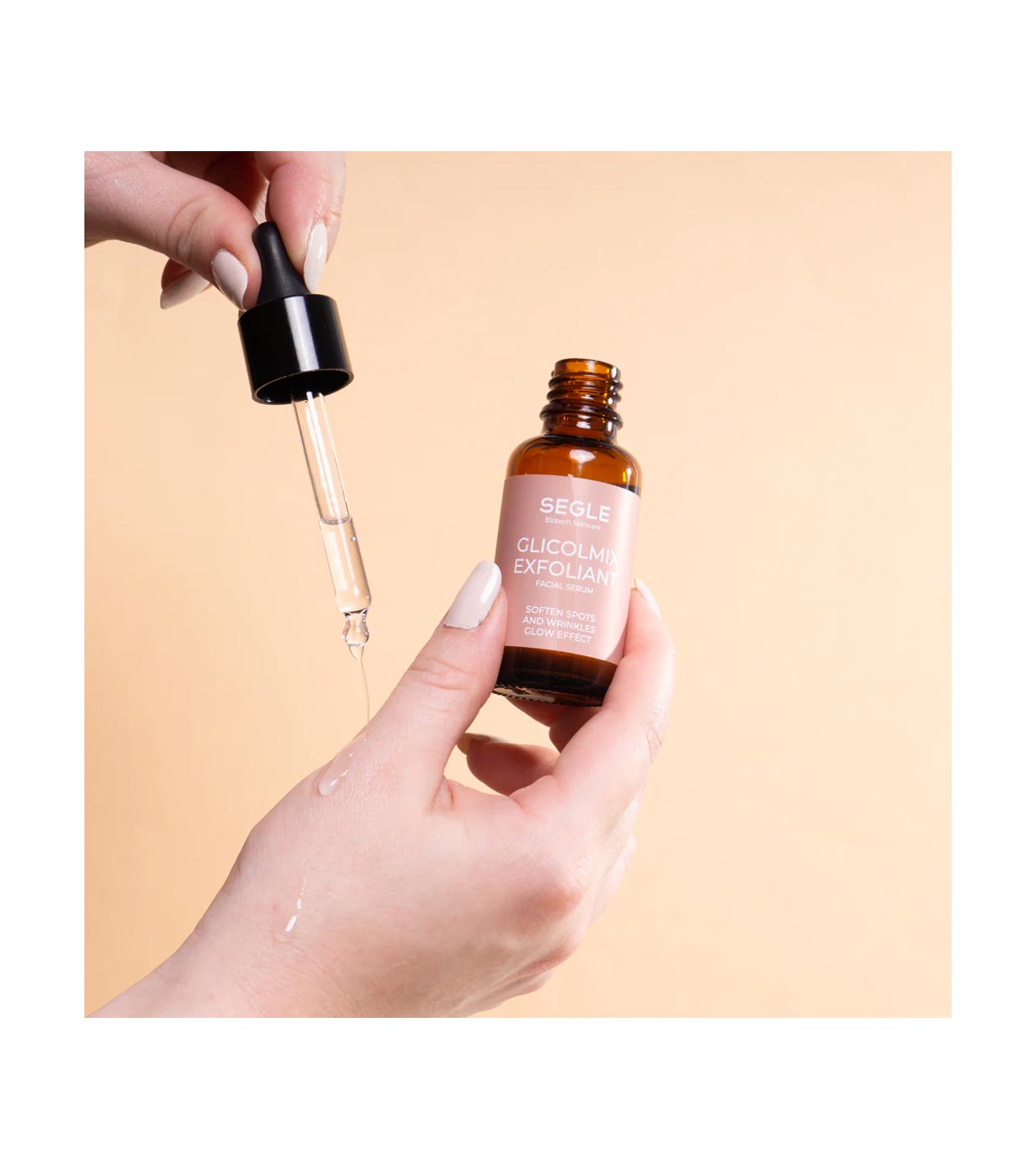 Le sérum exfoliant pour le visage SEGLE élimine les cellules mortes et les impuretés, laissant la peau plus douce et plus lisse.