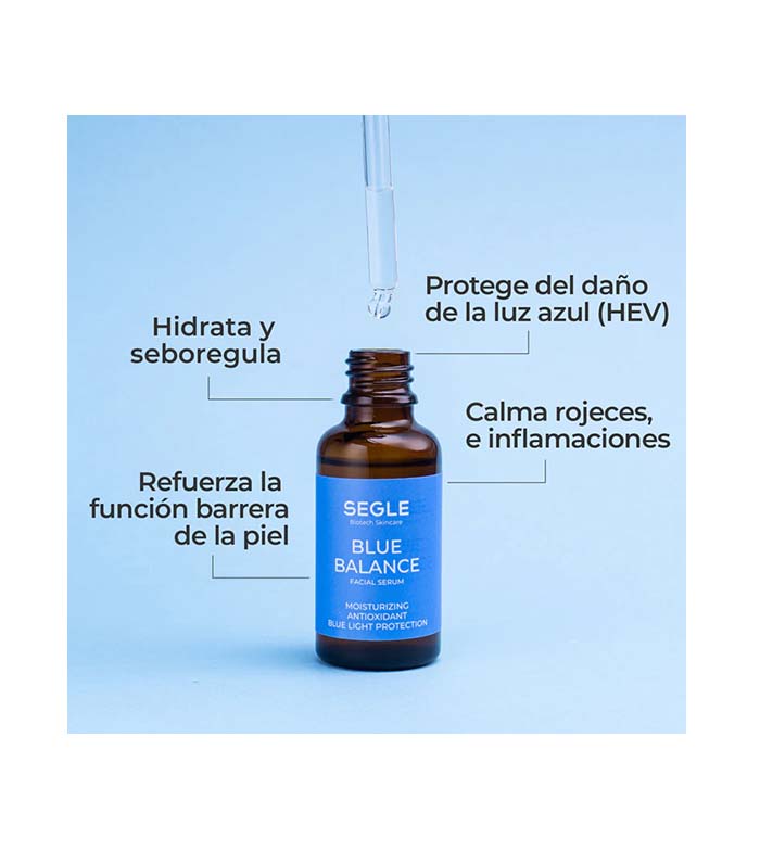 Le sérum hydratant pour le visage SEGLE est également antioxydant, protège contre les dommages causés par la lumière bleue et renforce la fonction barrière de la peau.