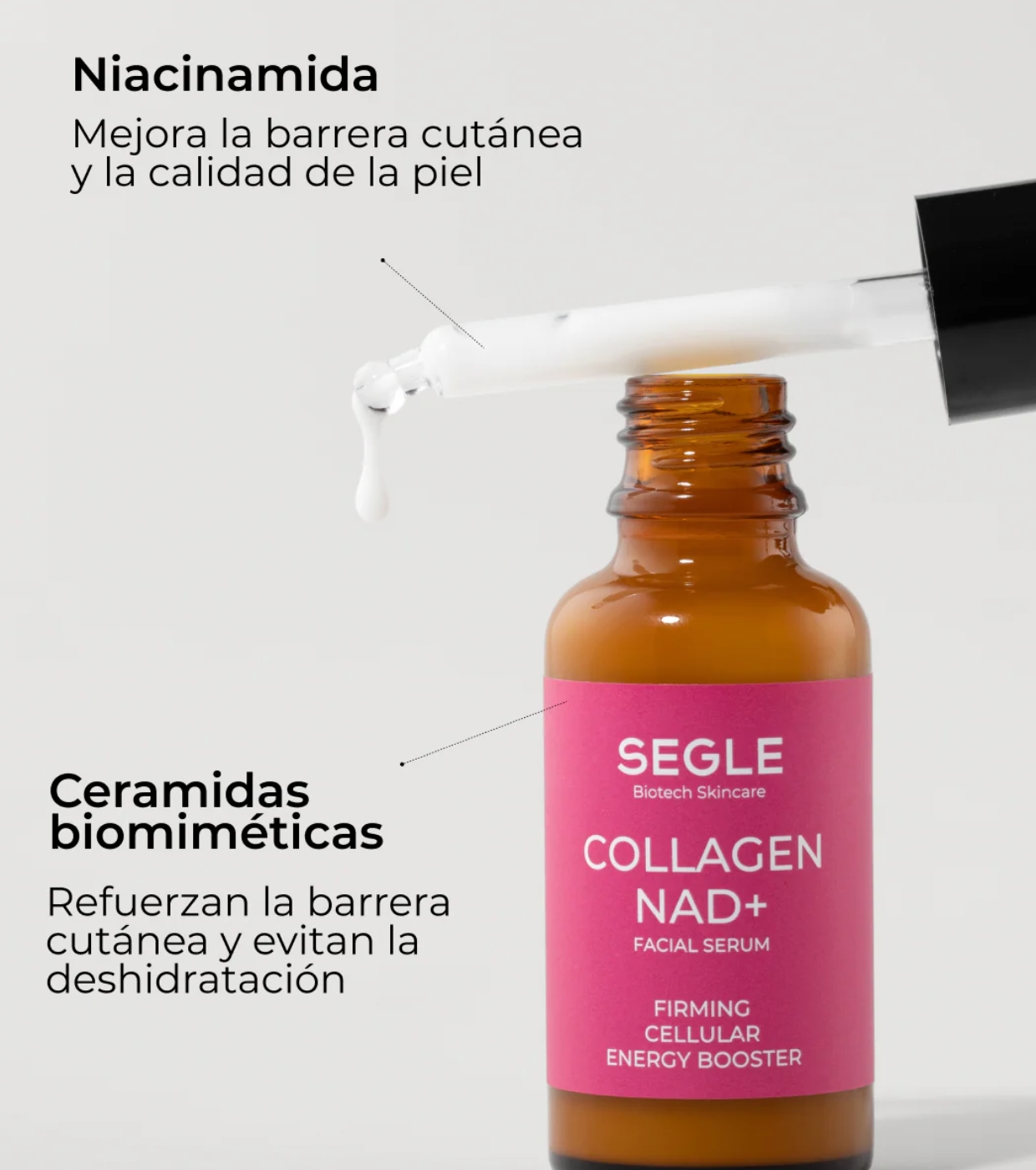 Le sérum Collagen NAD+ de SEGLE est un traitement raffermissant intelligent avancé qui réactive le collagène et l'énergie cellulaire tout en renforçant la fonction barrière et en stimulant la longévité de la peau.