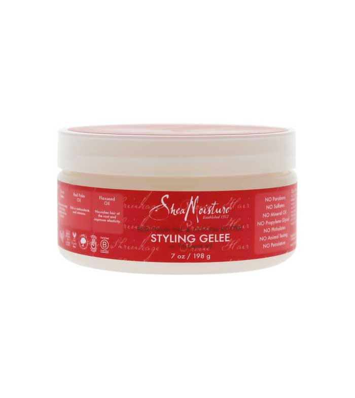 Le gel coiffant à l'huile de palme rouge et au beurre de cacao de Shea Moisture Styling Gelee offre une tenue légère et une consistance aqueuse à vos cheveux pour minimiser le rétrécissement des boucles.