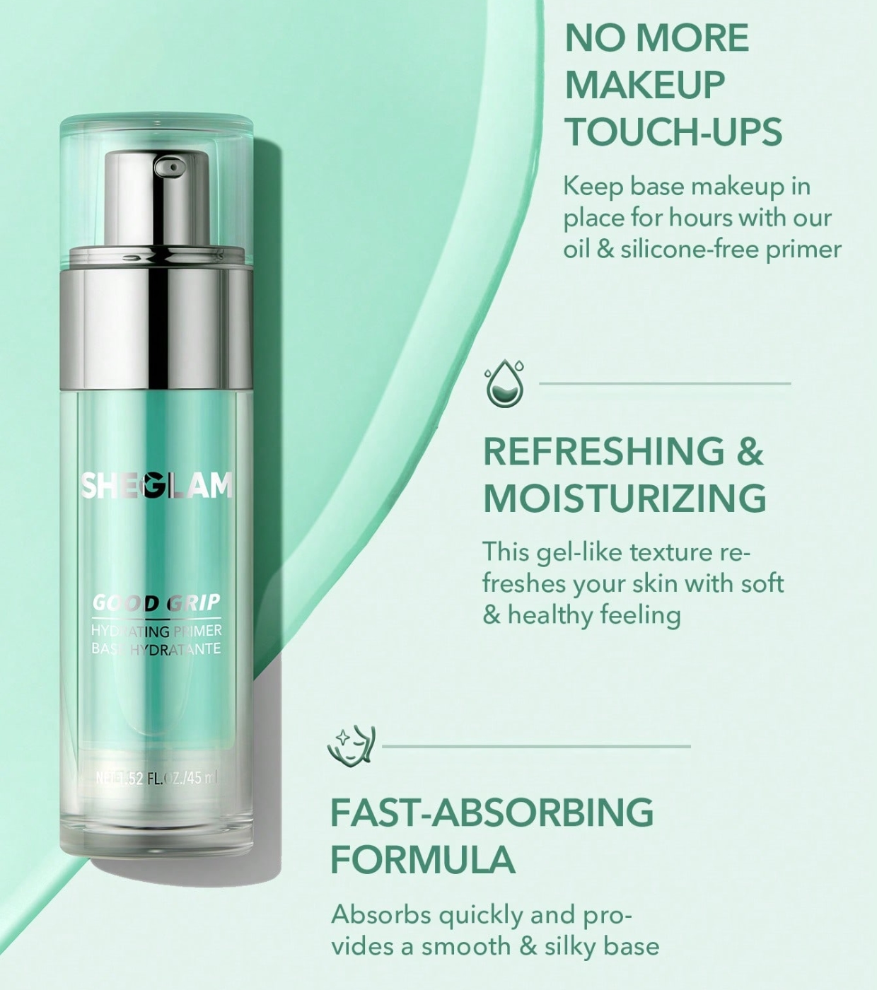 Préparez-vous à un maquillage qui tient toute la journée ! Cette base de teint hydratante SHEGLAM sans huile ni silicone possède une texture gel rafraîchissante qui laisse la peau douce, lisse et hydratée dès la première application.