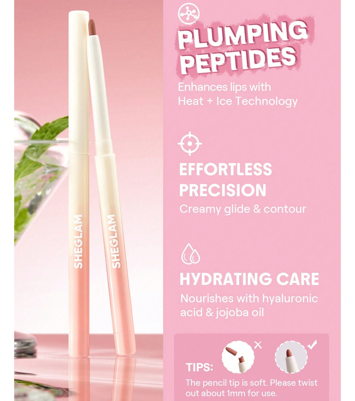 Définissez, sublimez et perfectionnez vos lèvres avec ce crayon à lèvres soyeux haute précision SHEGLAM , conçu pour obtenir un fini impeccable à chaque application.