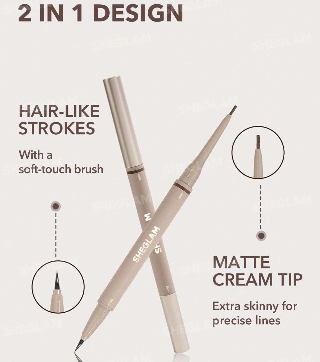 D'un côté, elle intègre une pointe ultra-fine en crème mate imperméable, parfaite pour dessiner des traits précis qui imitent les cheveux naturels et permettent d'obtenir un fini défini mais réaliste.
