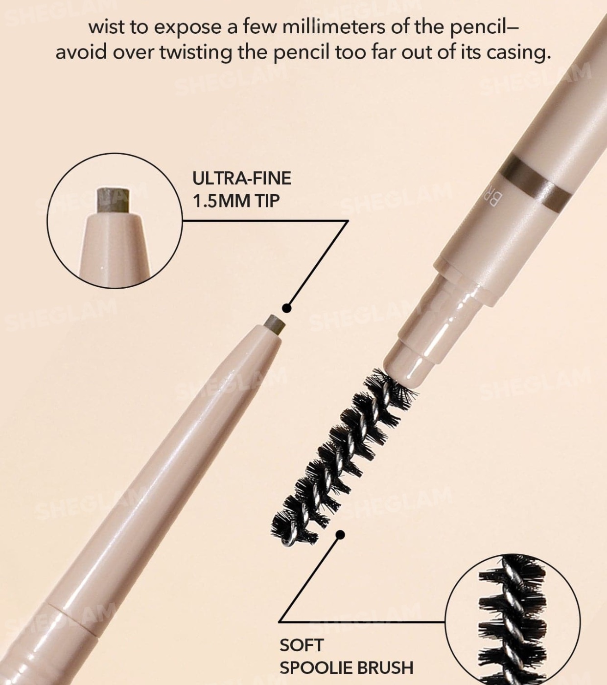 Le crayon à sourcils Insta-Fill de SHEGLAM est doté d'une pointe ultra-fine de 1,5 mm, conçue pour offrir un maximum de précision, de confort et de contrôle à chaque trait.
