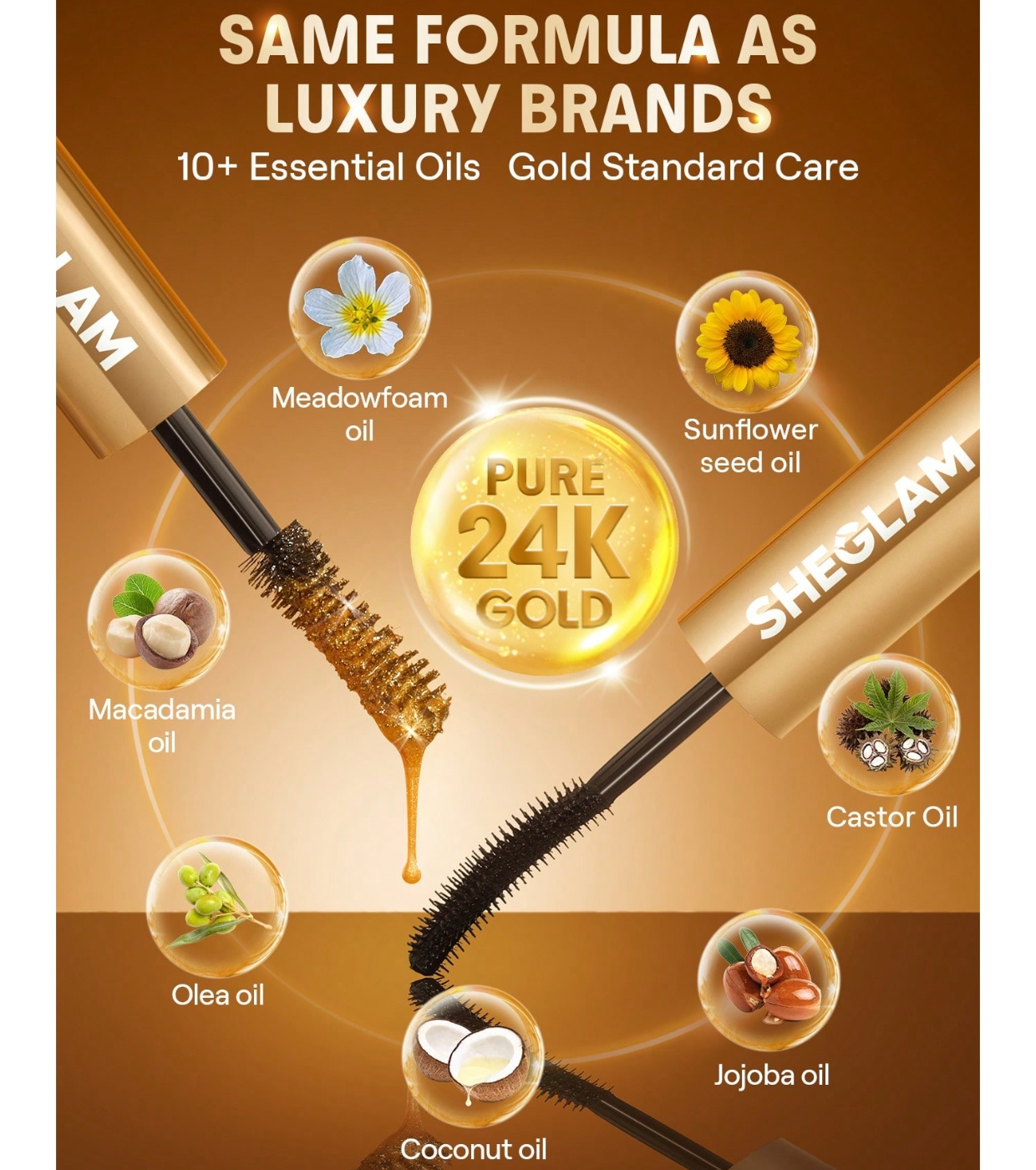 Sublimez votre look avec le mascara All in One 24K de SHEGLAM , une formule exclusive enrichie en or 24K authentique et en une puissante combinaison d'ingrédients nourrissants.