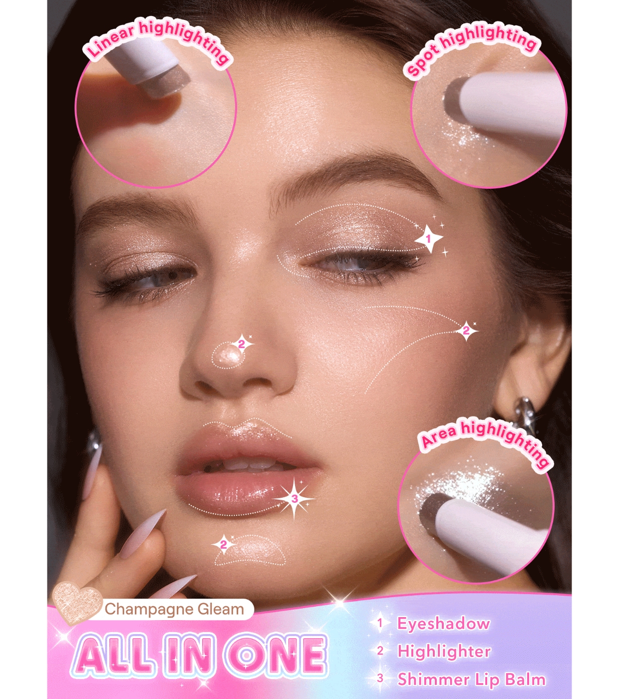 Sa formule solide innovante à la texture gel fond sur la peau, offrant un effet de gemme broyée et un éclat cristallin rafraîchissant, comme l'éclat d'une galaxie sur votre visage.
