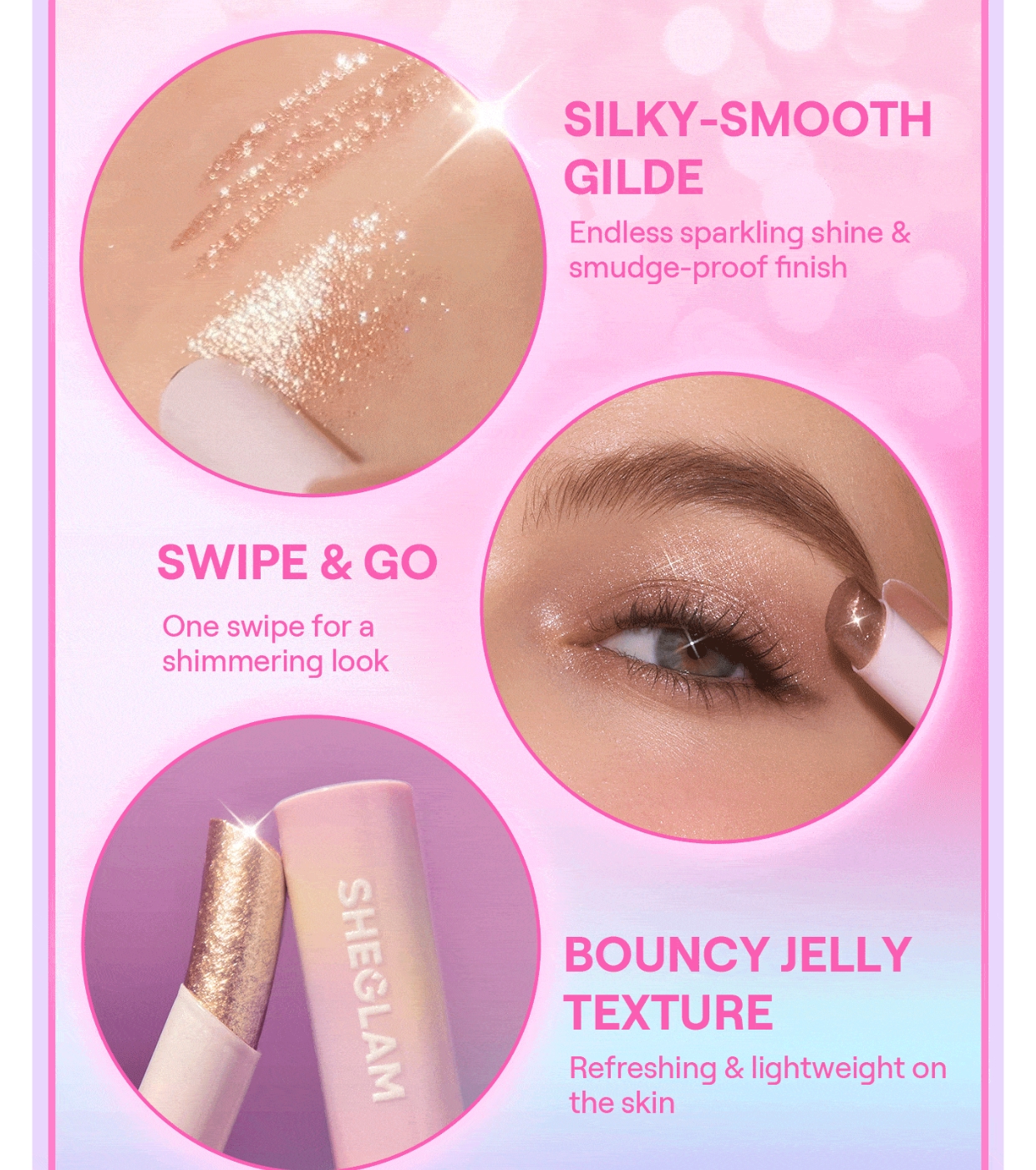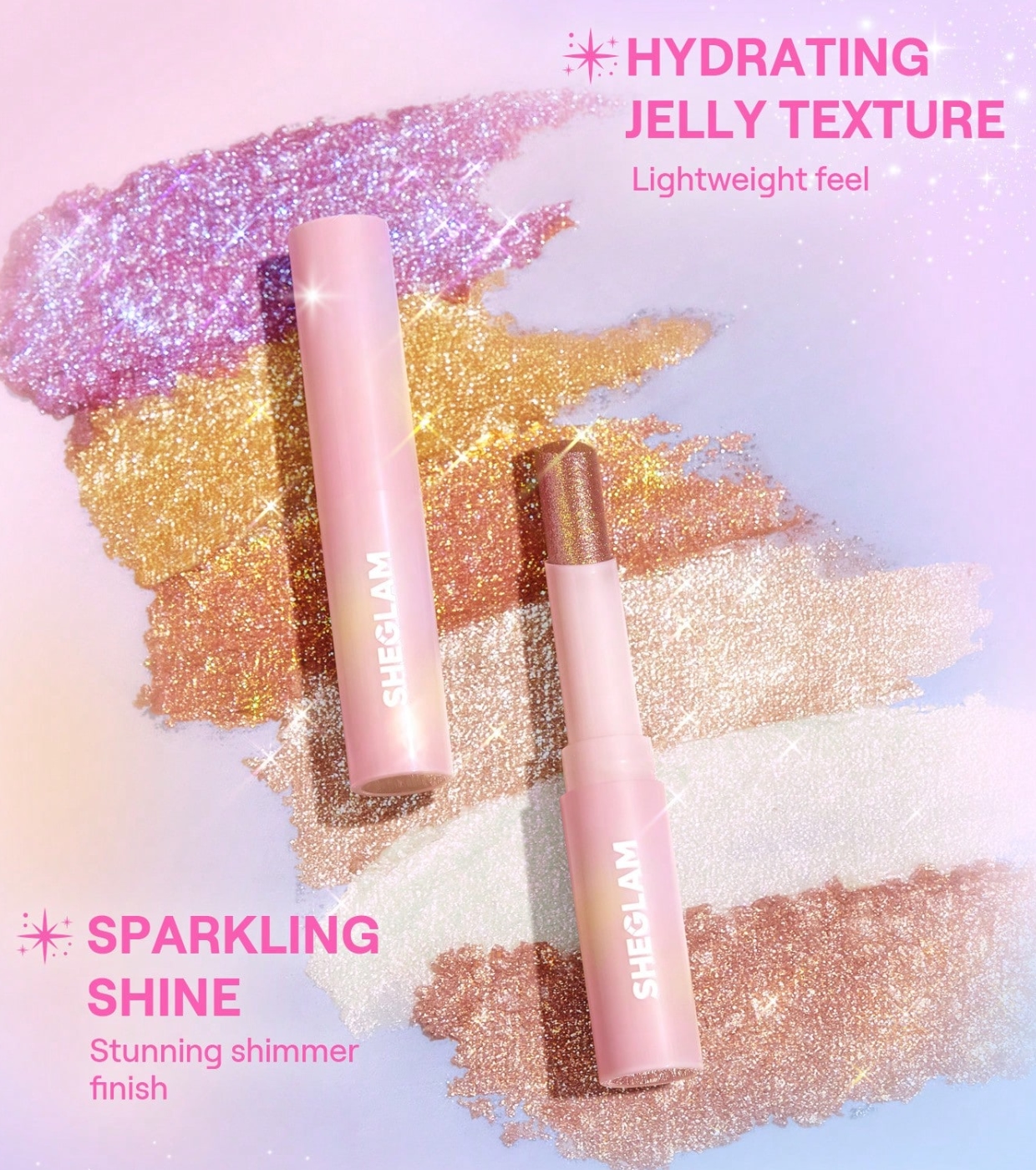 Faites monter la température et éblouissez avec le fard à paupières Crystal Jelly de SHEGLAM , un stick illuminateur qui combine eau et perles pailletées pour créer un fini humide, léger et ultra-lumineux en un seul passage.