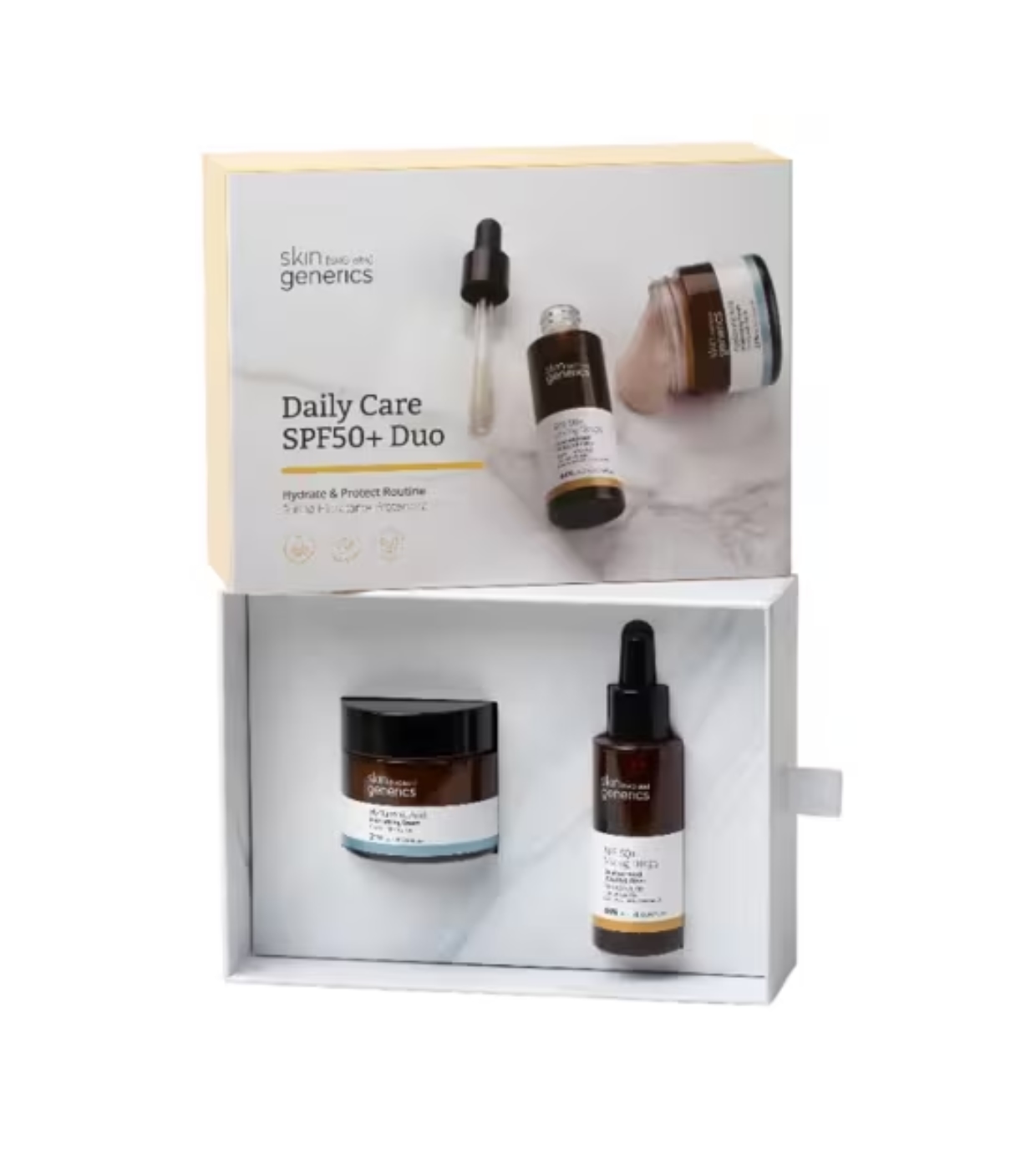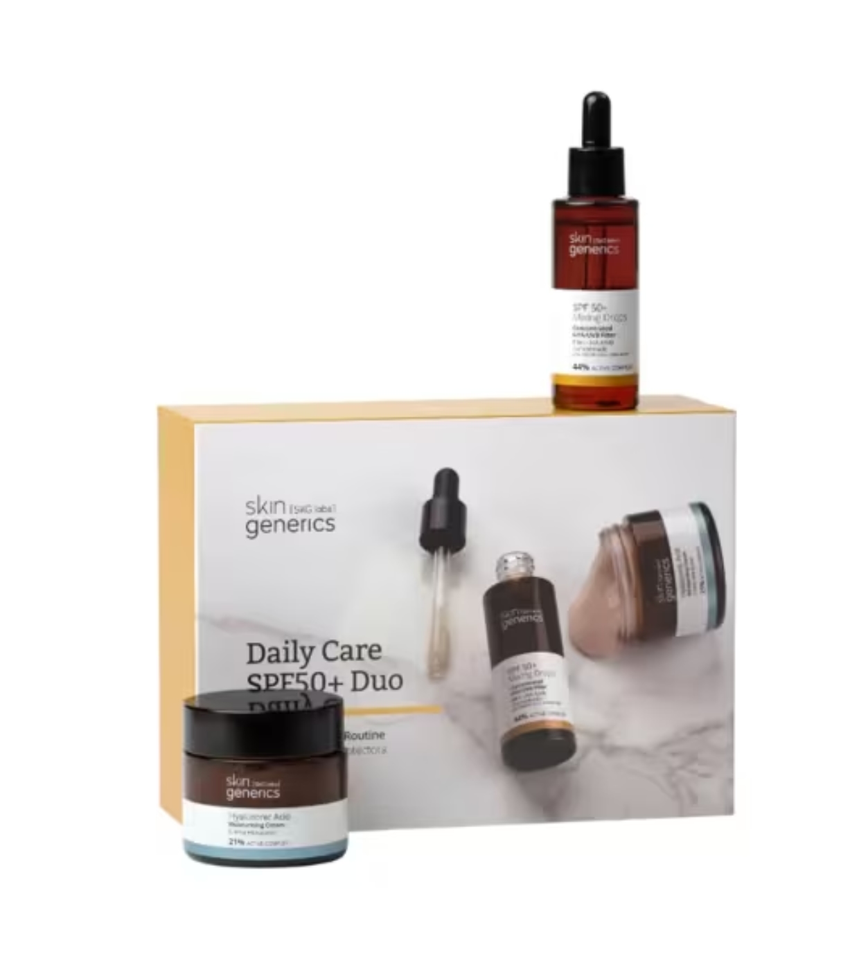 Skin Generics Daily Care SPF50 Duo de Skin Generics est le pack parfait pour ceux qui recherchent une protection solaire quotidienne sans sacrifier les soins de la peau.