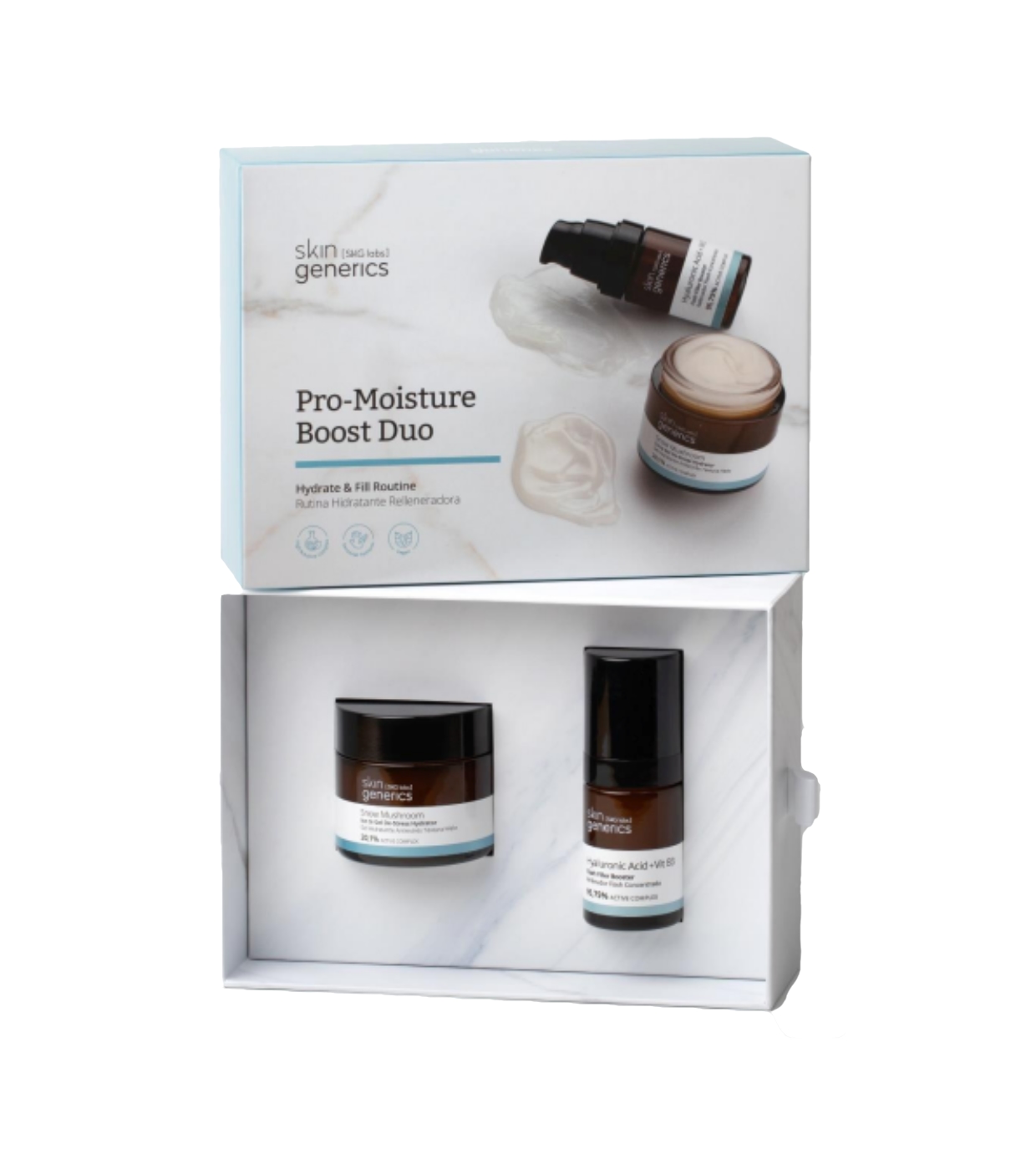 Découvrez le Skin Generics Pro-Moisture Boost Duo , le pack qui associe deux produits de la marque pour obtenir une peau intensément hydratée, douce et lumineuse.