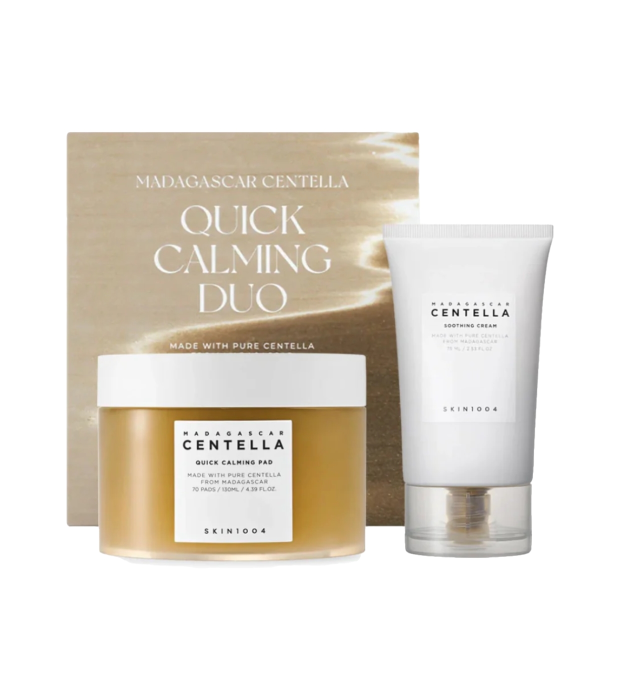 - 1 x Madagascar Centella Quick Calming Pad - 70 pads : Crème hydratante apaisante formulée avec un pH légèrement acide, qui aide à reconstituer l'hydratation et à renforcer la barrière cutanée.