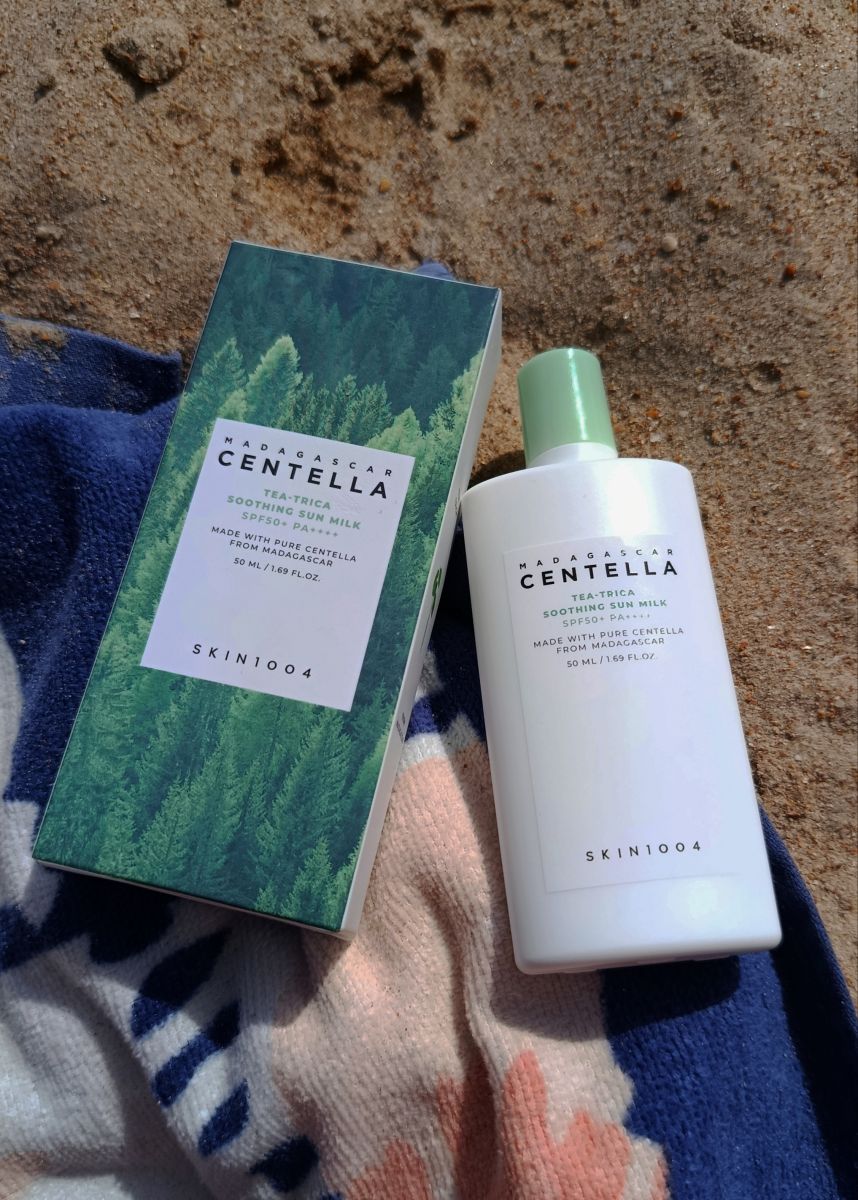 Protégez votre peau tout en l'apaisant et en la revitalisant avec le Centella Tea-Trica Soothing Sun Milk de SKIN1004 , la crème solaire ultime pour les peaux grasses, sensibles ou à tendance acnéique.