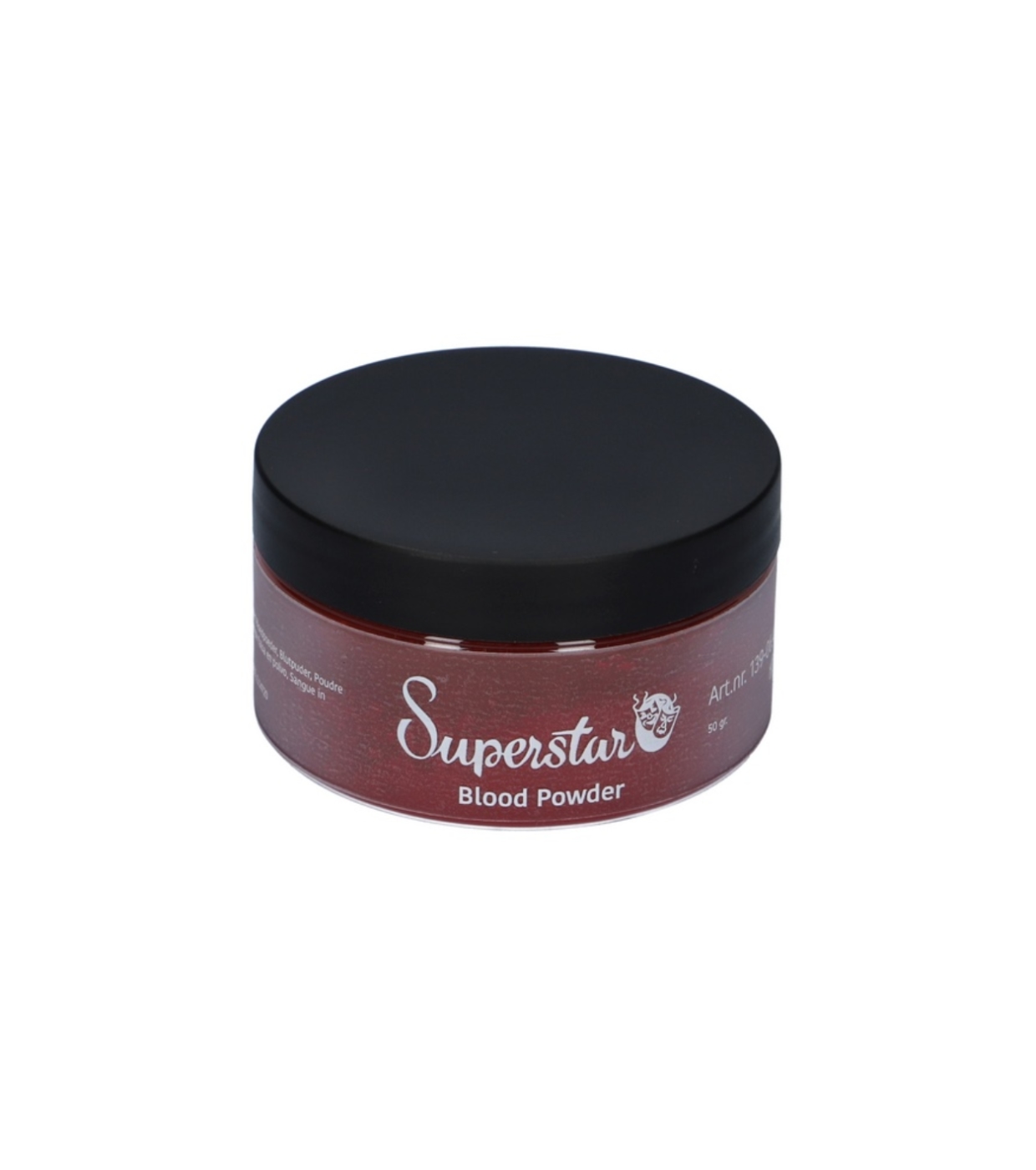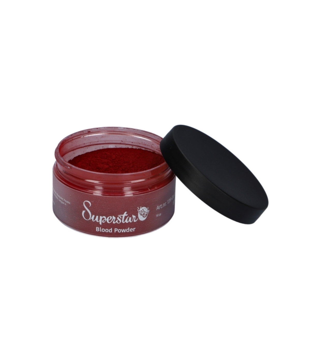 Superstar La poudre de sang artificiel est le produit idéal pour recréer des effets de saignement actif (artériel) dans le maquillage artistique, la caractérisation et les effets spéciaux.