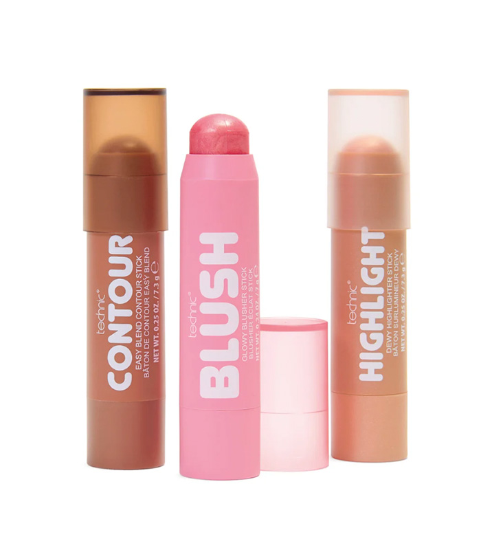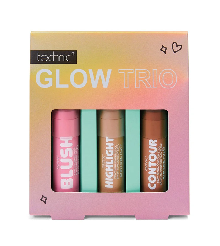 Affichez une peau radieuse et parfaitement définie avec le coffret visage Glow Trio de Technic , composé d'un blush éclat modulable, d'un surligneur crème facile à appliquer et d'un stick contour ultra-crémeux.