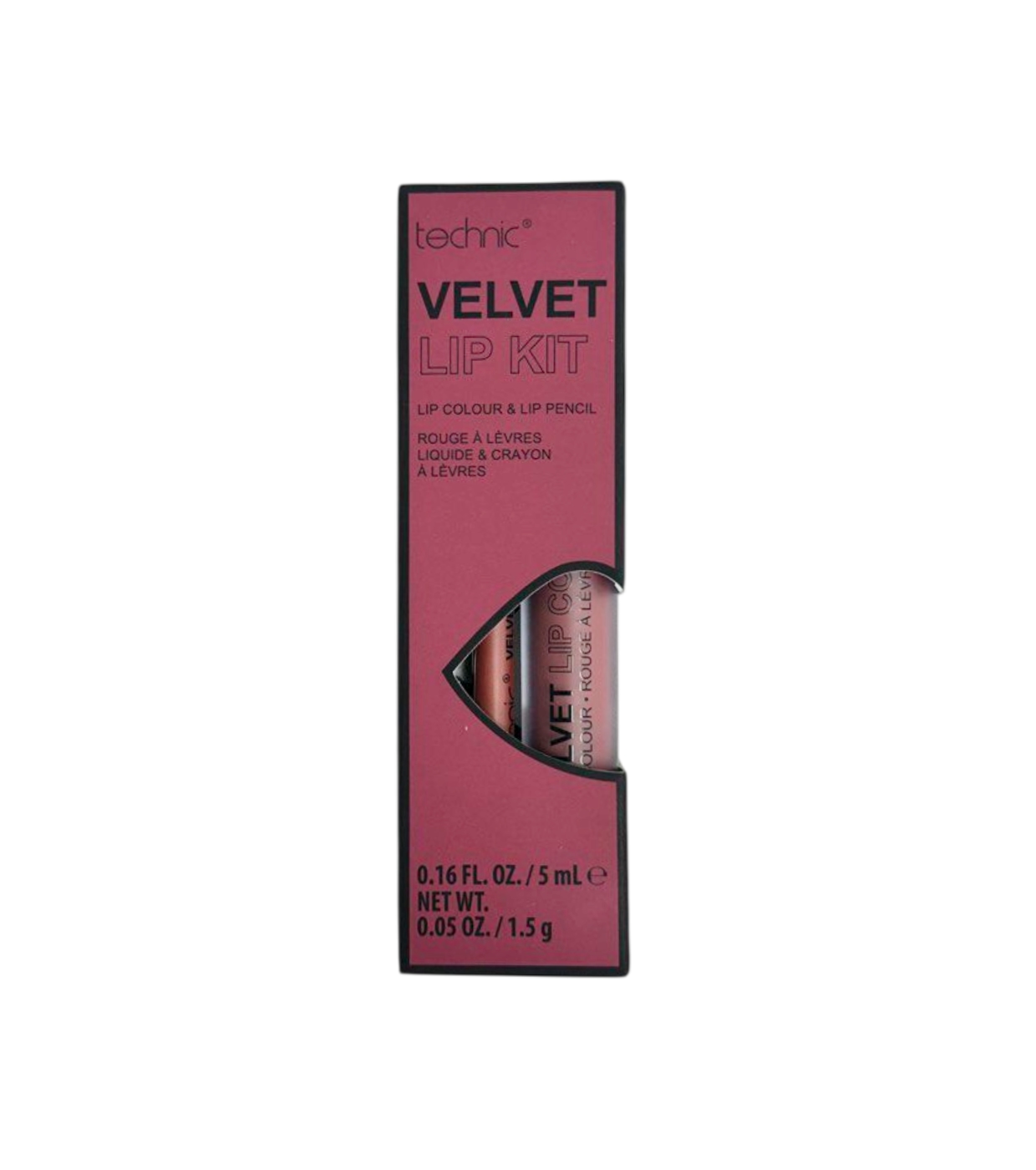 Le Velvet Lip Kit de Technic Cosmetics est un ensemble complet pour les lèvres qui combine un rouge à lèvres liquide et un crayon à lèvres assorti, conçu pour obtenir un fini mat velouté, défini et longue tenue.