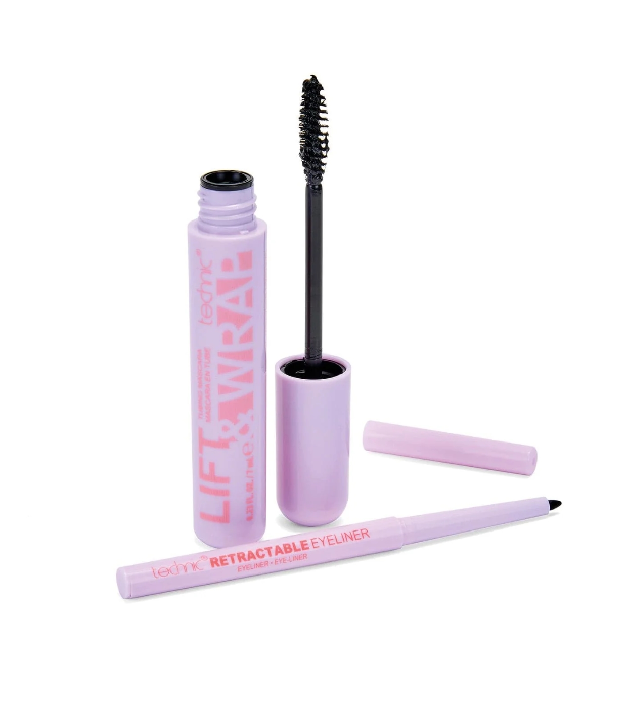 Il comprend un tube de mascara, conçu pour soulever et envelopper chaque cil, apportant volume et définition, et un eye-liner noir rétractable crémeux et de haute précision, parfait pour intensifier votre look avec une finition longue durée.