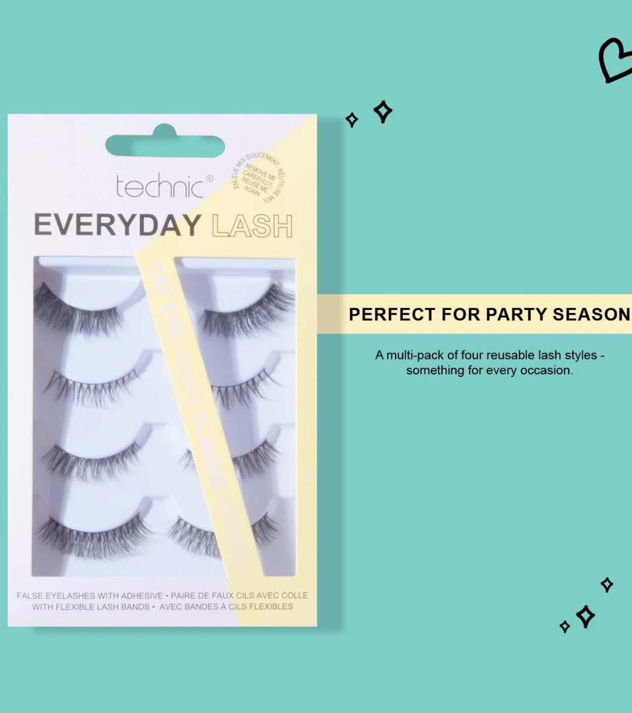 Choisissez le style de cils qui correspond le mieux à votre humeur avec ce multi- ensemble de faux cils Everyday Lash de Technic Cosmetics comprenant 4 styles de cils, tous dotés d'une bande transparente pour une intégration parfaite et naturelle.