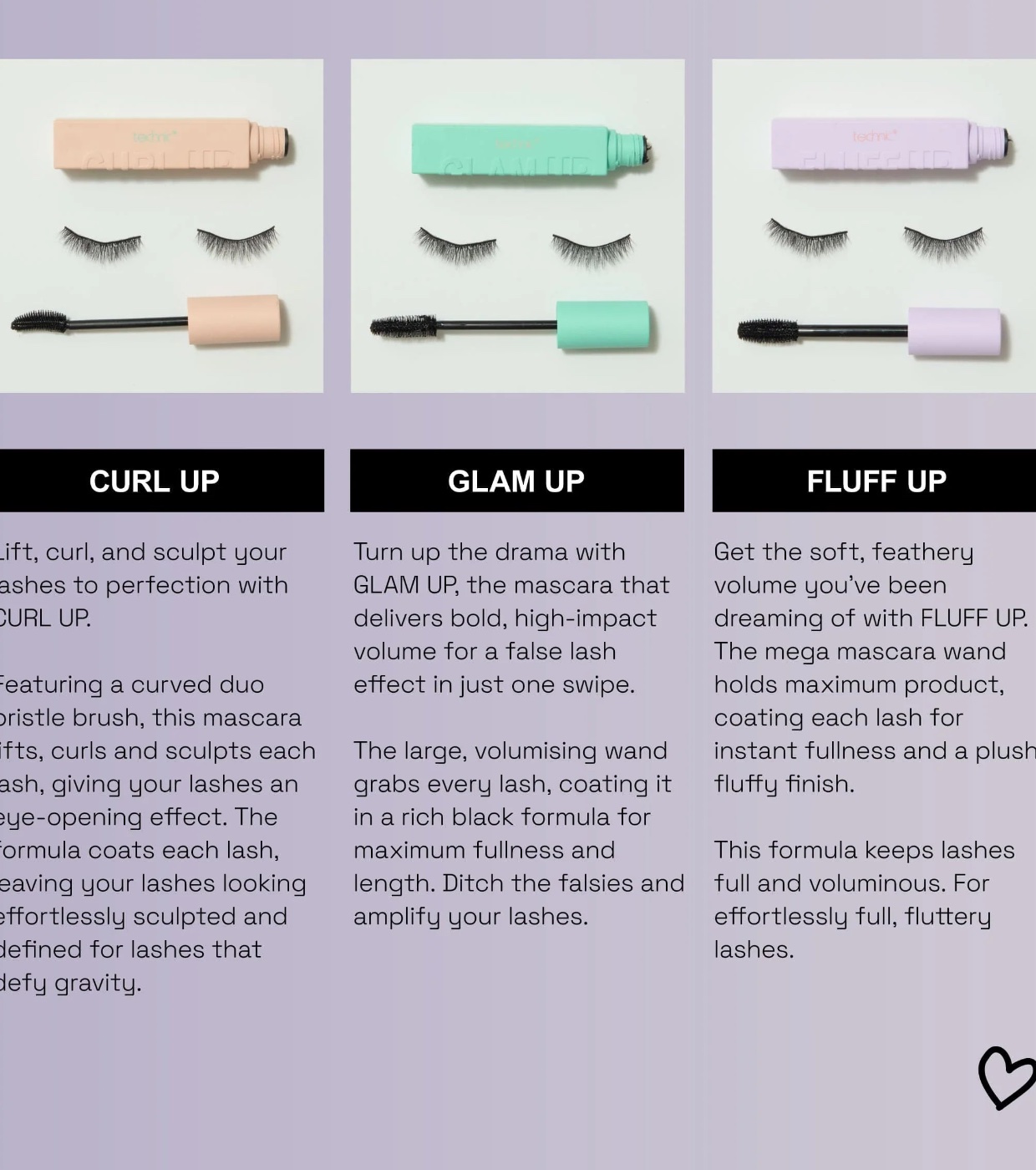 Choisissez votre style de cils préféré avec ces mascaras de Technic Cosmetics conçus pour obtenir des cils audacieux et magnifiques, sans avoir besoin de faux cils.