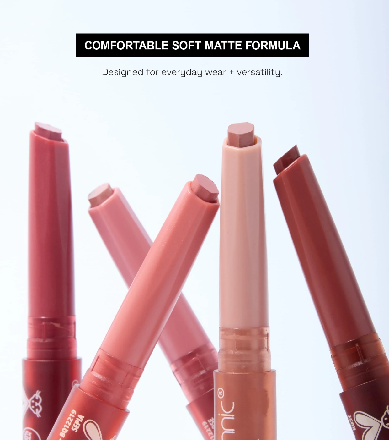Le Soft Matte Lip Crayon de Technic Cosmetics a un fini mat doux et est conçu pour créer des lèvres plus définies avec un effet repulpant naturel et un fini flouté moderne en un seul passage.