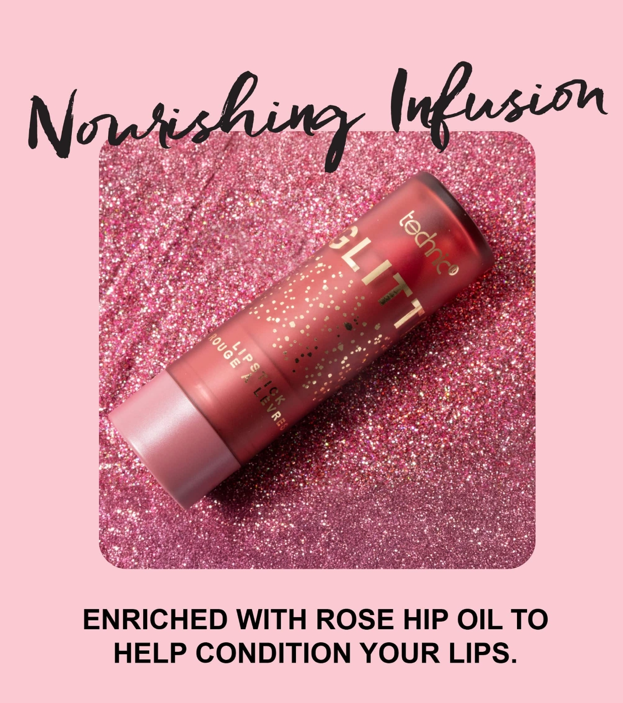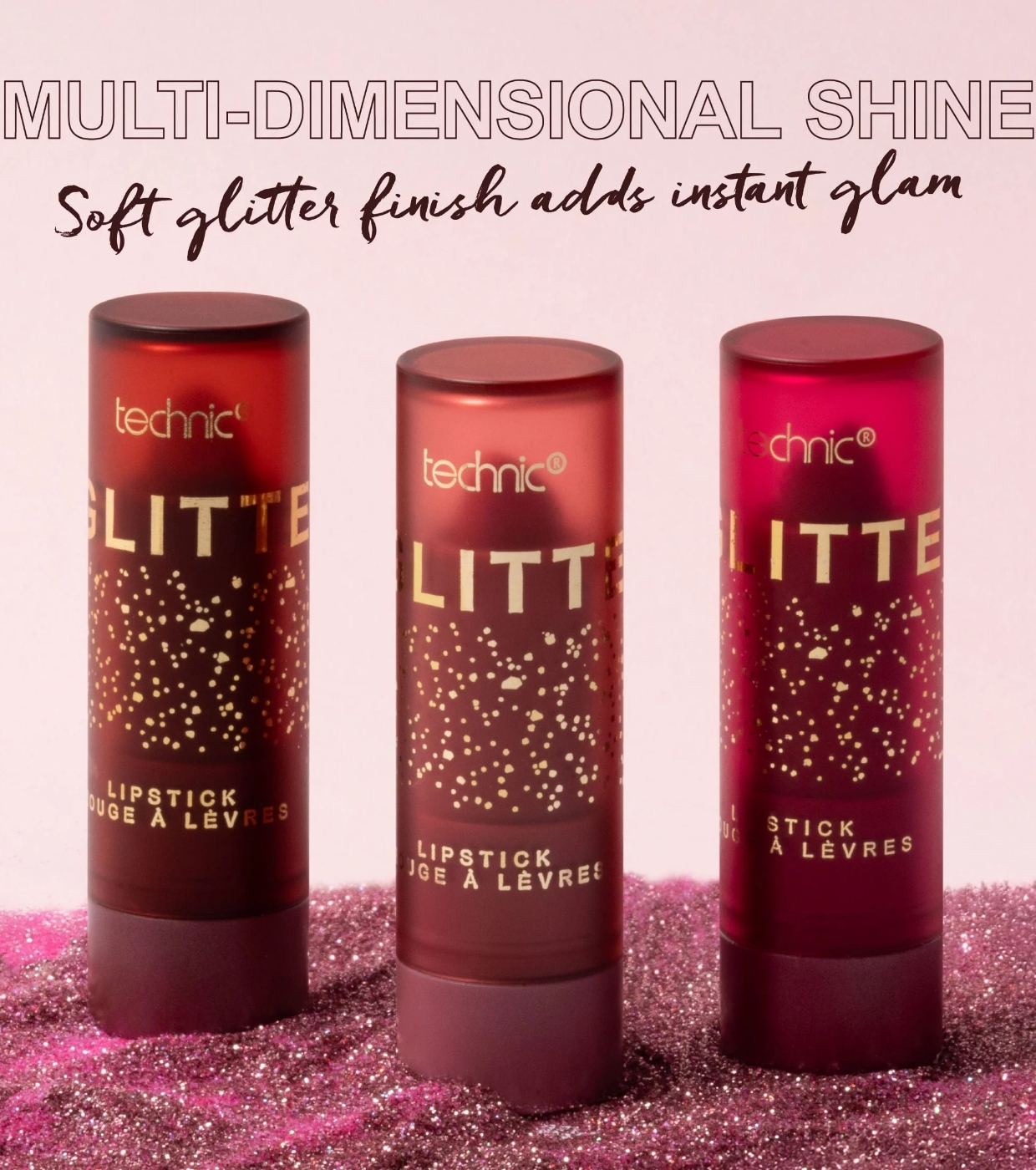 Hautement pigmenté et doté d'une brillance subtile et sophistiquée, Glitter Lips de Technic Cosmetics rehausse n'importe quel look avec un fini lumineux et glamour.