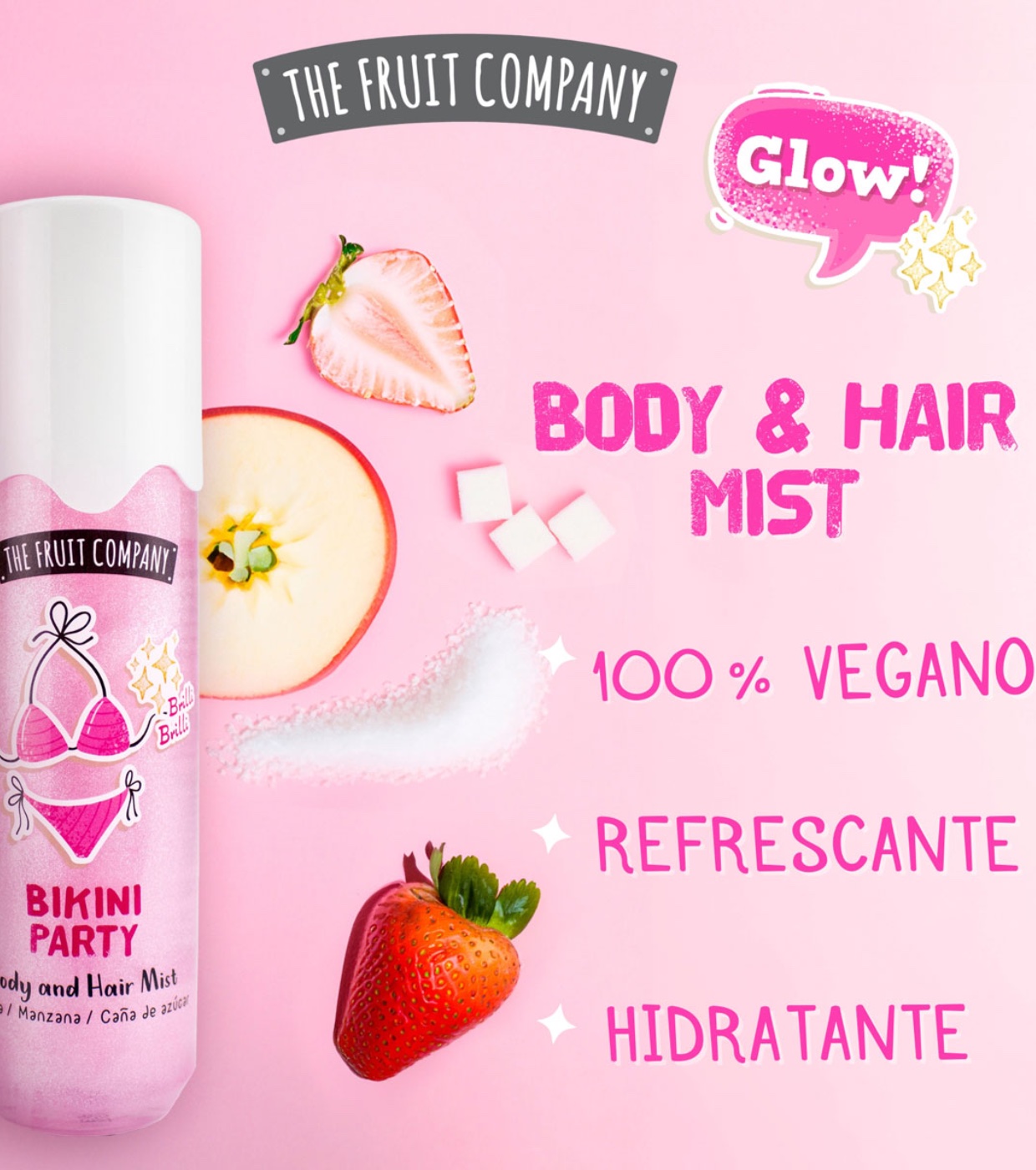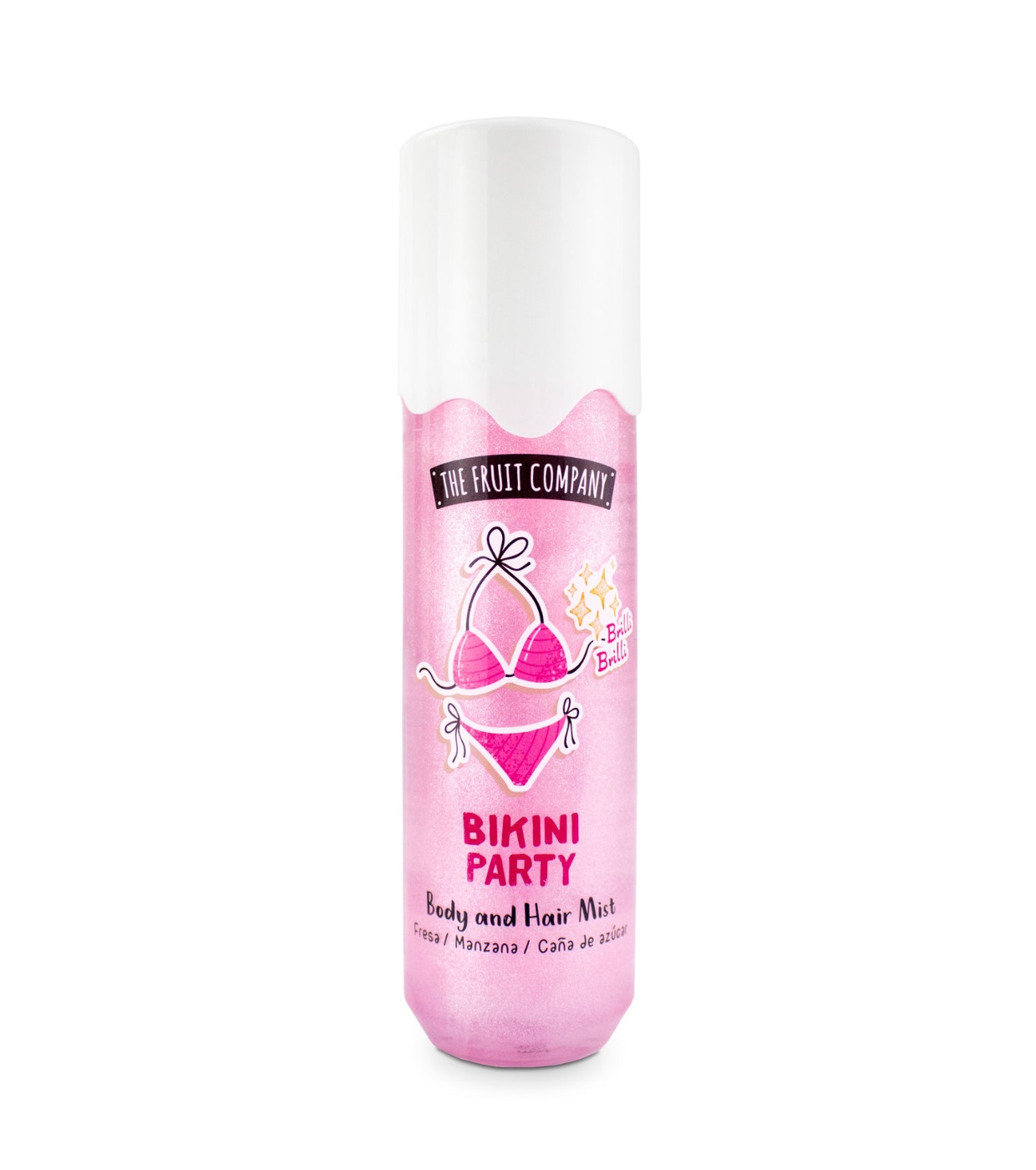 Ajoutez une touche d'été et préparez-vous à briller à n'importe quelle fête avec la brume pour cheveux et corps Bikini Party de The Fruit Company !