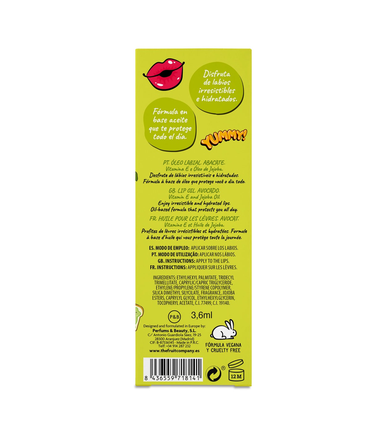 Prenez soin de vos lèvres avec l'huile à lèvres Avocado de The Fruit Company, l'alliée parfaite pour des lèvres irrésistibles, douces et hydratées.