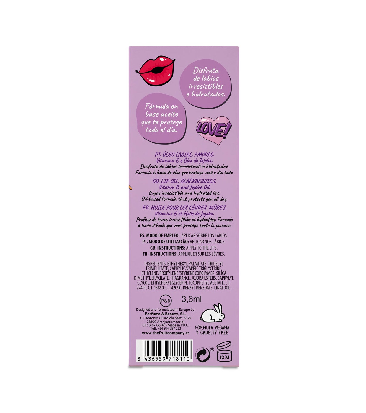 Idéal pour celles qui recherchent un soin des lèvres nourrissant, 100% vegan, au parfum fruité irrésistible. Obtenez des lèvres irrésistibles avec l'huile pour les lèvres Blackberry de The Fruit Company !